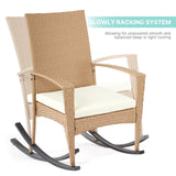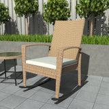 Mondeer Chaise de Jardin Exterieur Fauteuil à Bascule en Rotin Fauteuils de Salon à Bascule Rocking Chair avec Coussin D'assise Déhoussable Fauteuil Relax Jardin Plein Air Beige