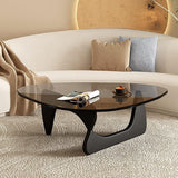 MZBDYYF Table Basse Triangulaire Moderne du Milieu du siècle avec Dessus en Verre et Base en Bois pour Le Salon - Conception Ovale rétro pour Le Bureau à Domicile - Finition Brune Naturelle