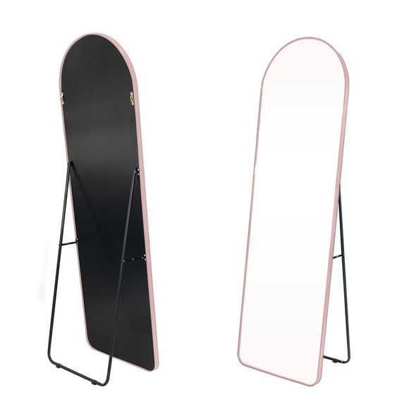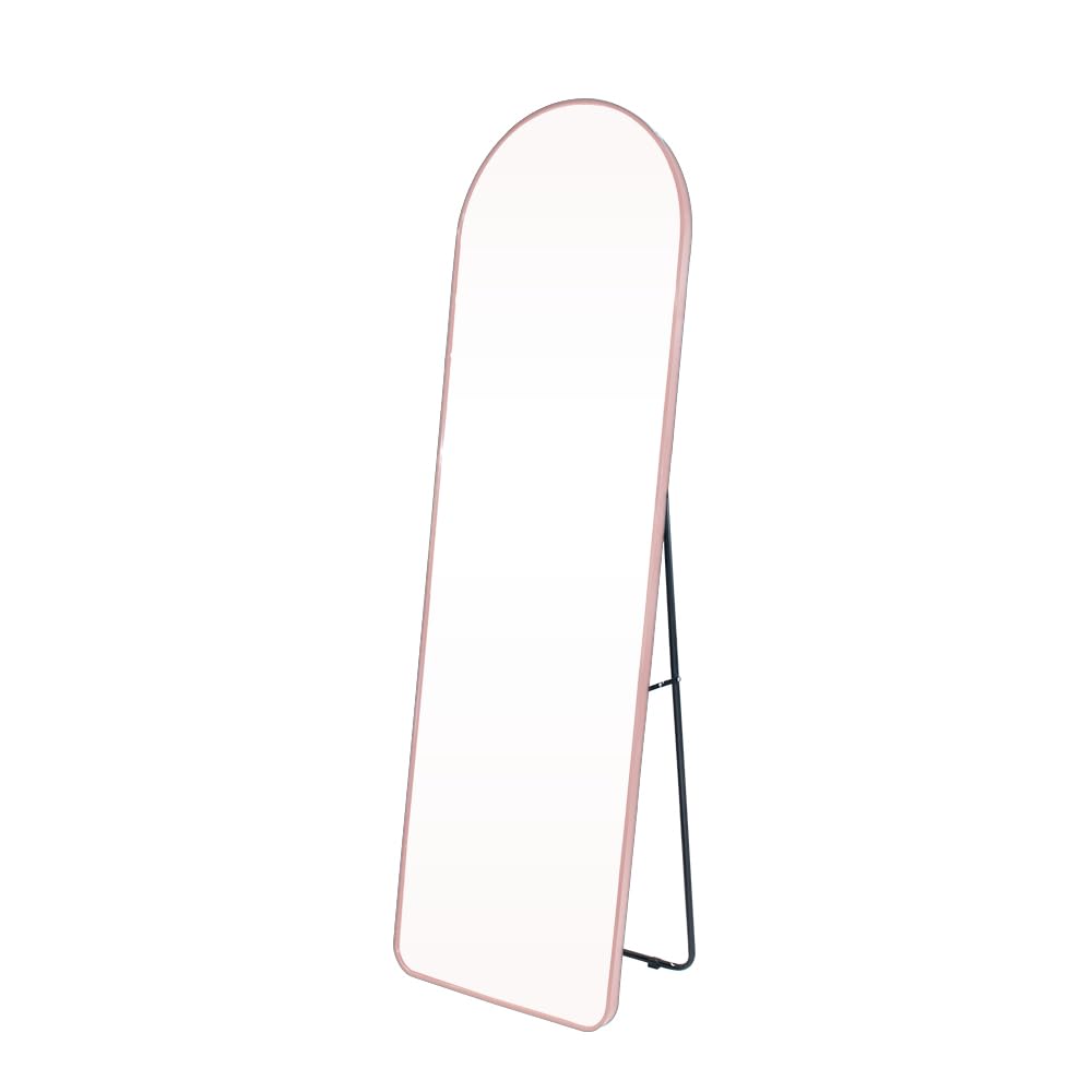 NESHER HOME Miroir Mural Pleine Longueur 160x50cm Complet arqué à Poser au Sol avec Support ou à accrocher au Mur avec kit de Fixation Inclus - Finition du Cadre en Aluminium brossé Rose Gold