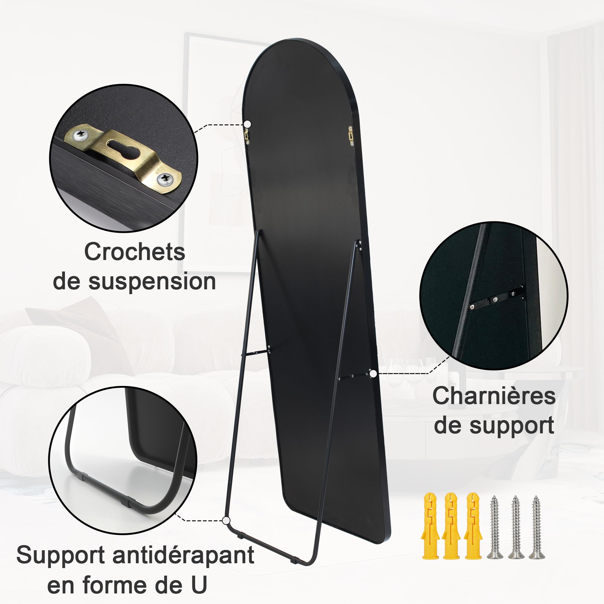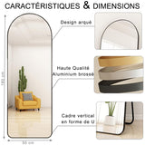 - ✅【Miroir en forme d’arche】: Ce miroir mural pleine longueur en forme d'arche ajoute une touche de sophistication à n'importe quel espace, qu'il soit posé au sol avec son support inclus ou accroché au mur à l'aide du kit de fixation fourni.