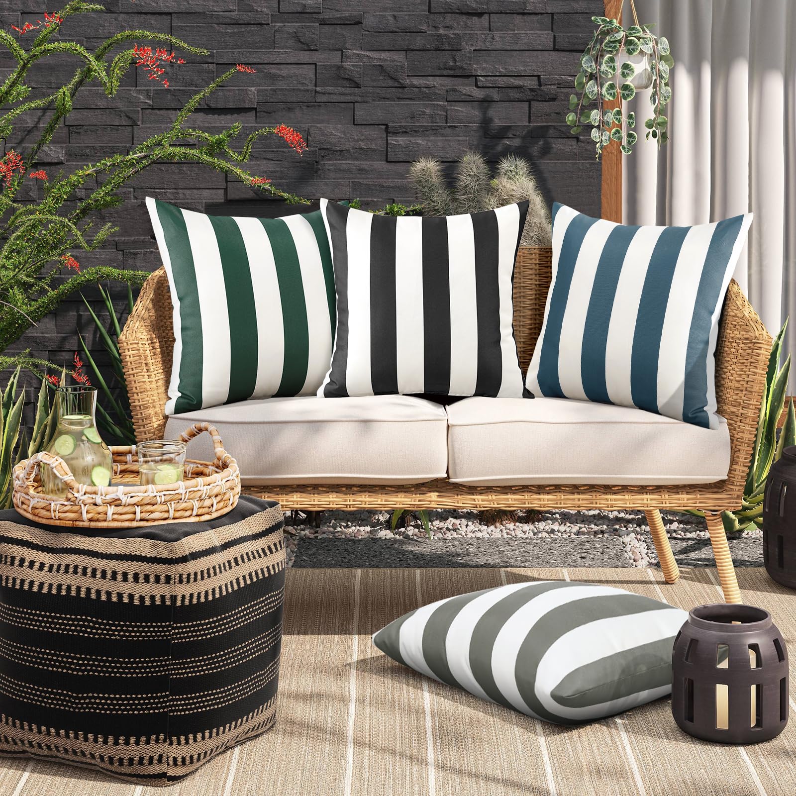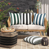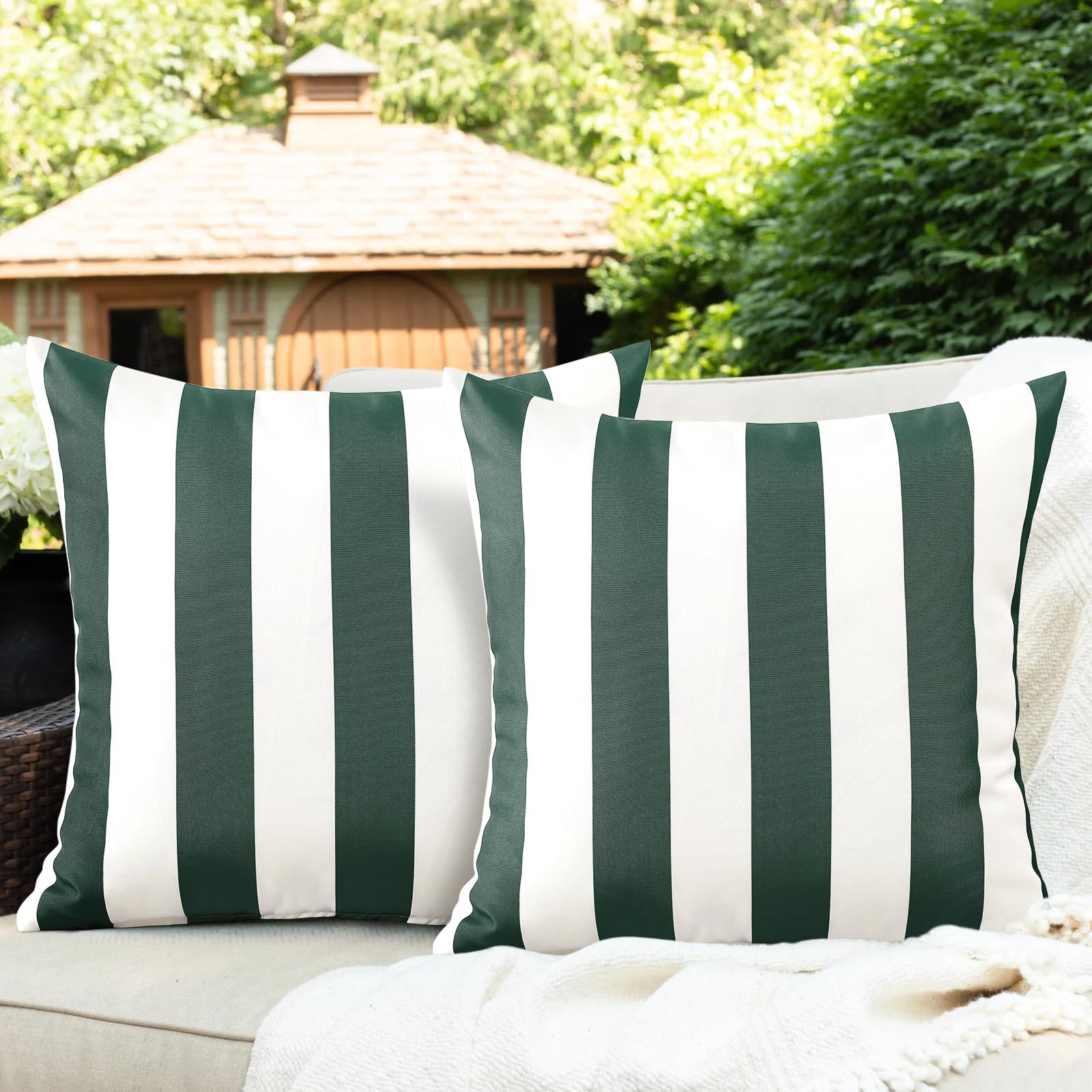 Ohok Lot de 2 housses de coussin décoratives imperméables à rayures pour canapé, salon, balcon, jardin, voiture - Vert - 45 x 45 cm