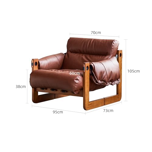 OLEYLUCKIDEA Fauteuil avec accoudoirs et Pieds en Bois Massif, Lounge en Cuir PU, Fauteuil de Lecture Vintage, Relax pour Salon et Chambre à Coucher, Marron