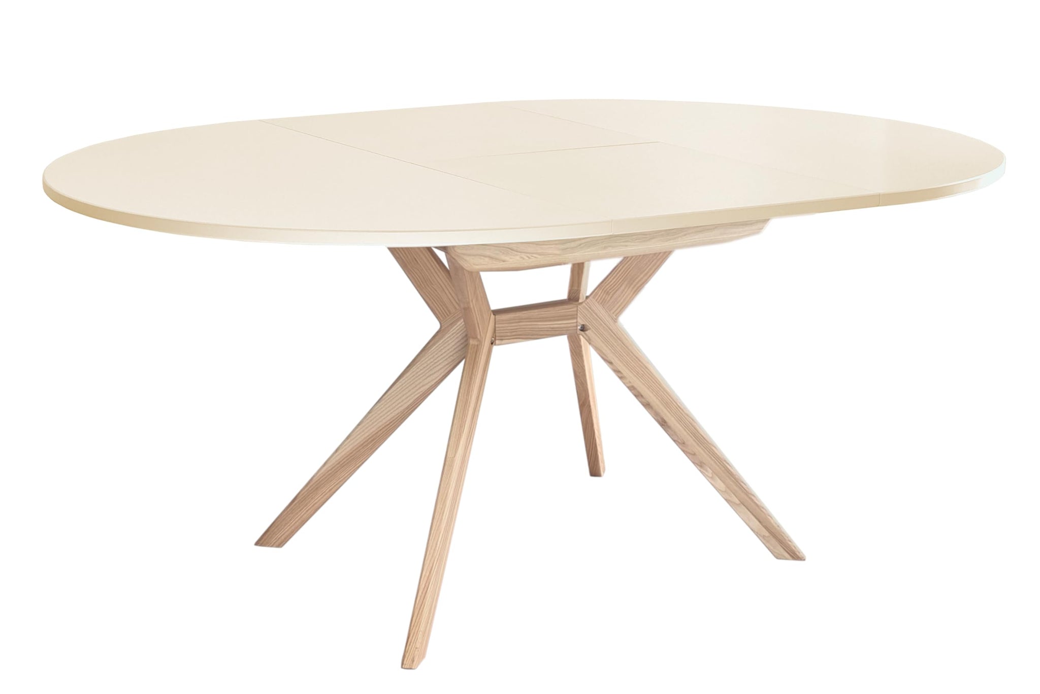 Ragaba, Biju, Table de Salle à Manger Ronde, 110 cm, Table de Salle à Manger pour 6 Personnes, Frêne Massif et Plateau MDF, Peu encombrante, Extensible, Blanc Craie