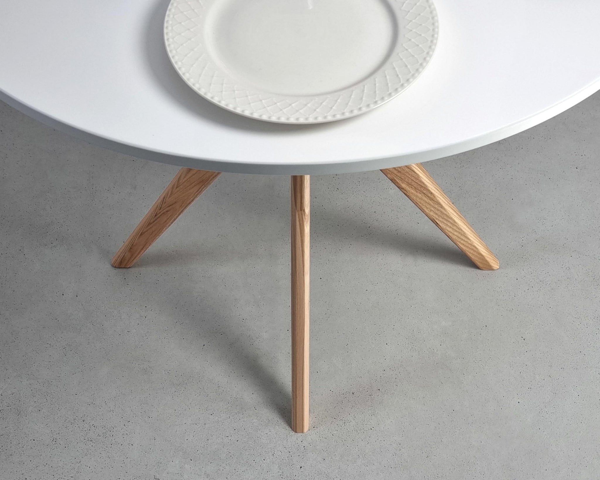 - Petite table ronde avec plateau en MDF, qui facilite et accélère le nettoyage.