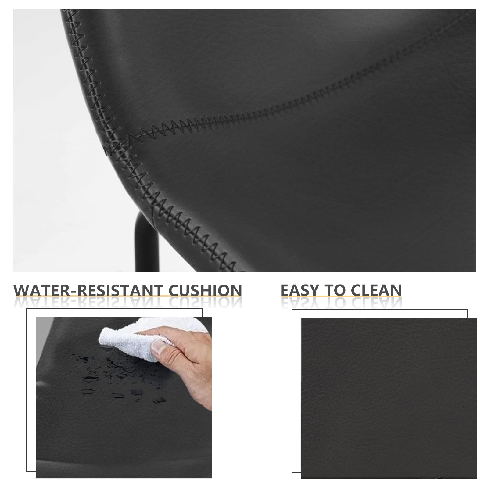• Siège confortable : Le siège et le dossier des chaises sont fabriqués en cuir synthétique de haute qualité et avec un coussin en mousse qui ajoute de la douceur et du confort. De plus, les doubles coutures en zigzag offrent un détail décoratif et une dose supplémentaire de charme campagnard chic.
