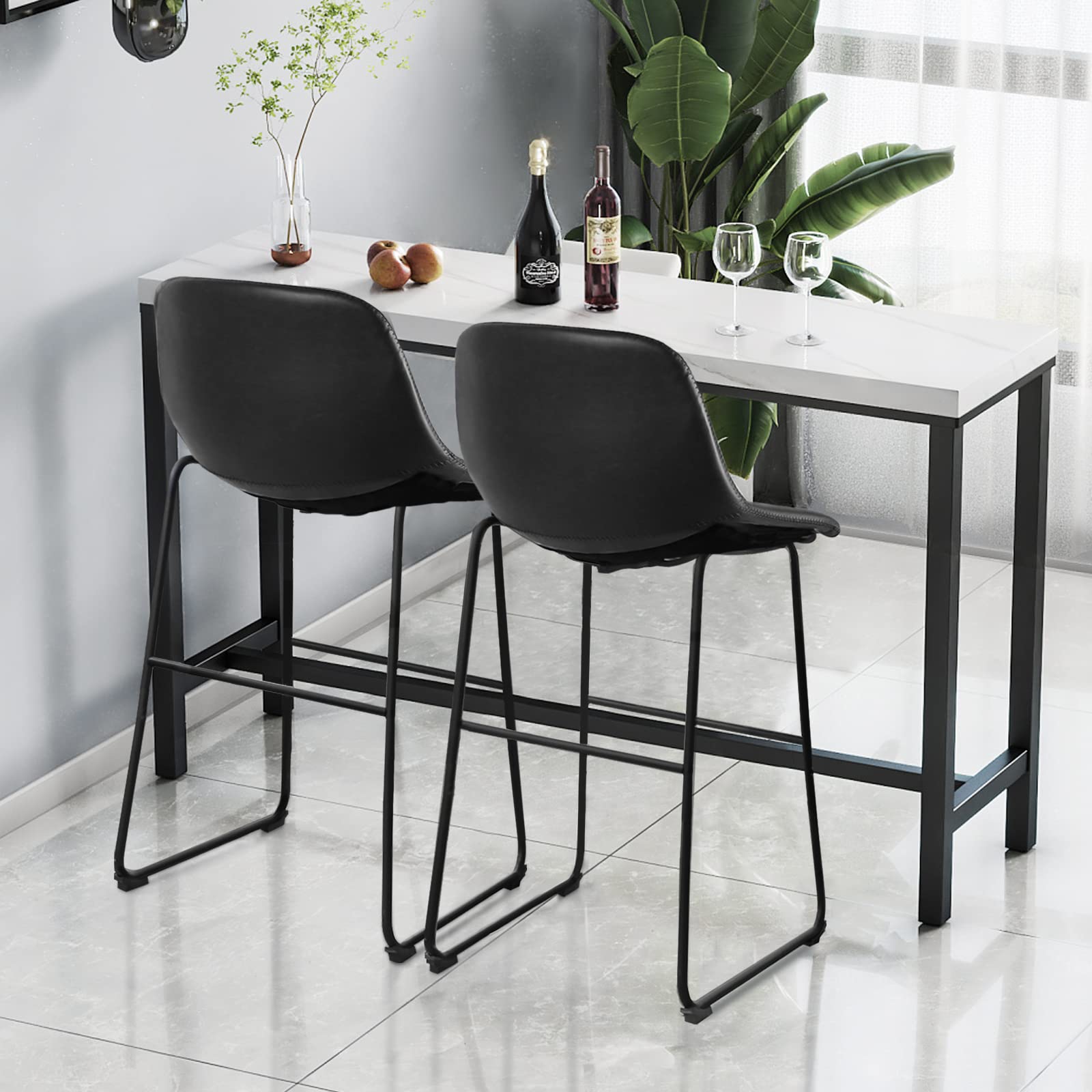 RFIVER Lot de 2 Tabouret de Bar, Chaise de Salle à Manger de Style Vintage Confortable avec Siège en Cuir PU et Base en Métal Robuste pour Cuisine Salon, Noir