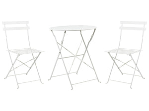 Salon de Jardin Bistrot Table et 2 Chaises en Acier Blanc Pliable avec Patins Fiori