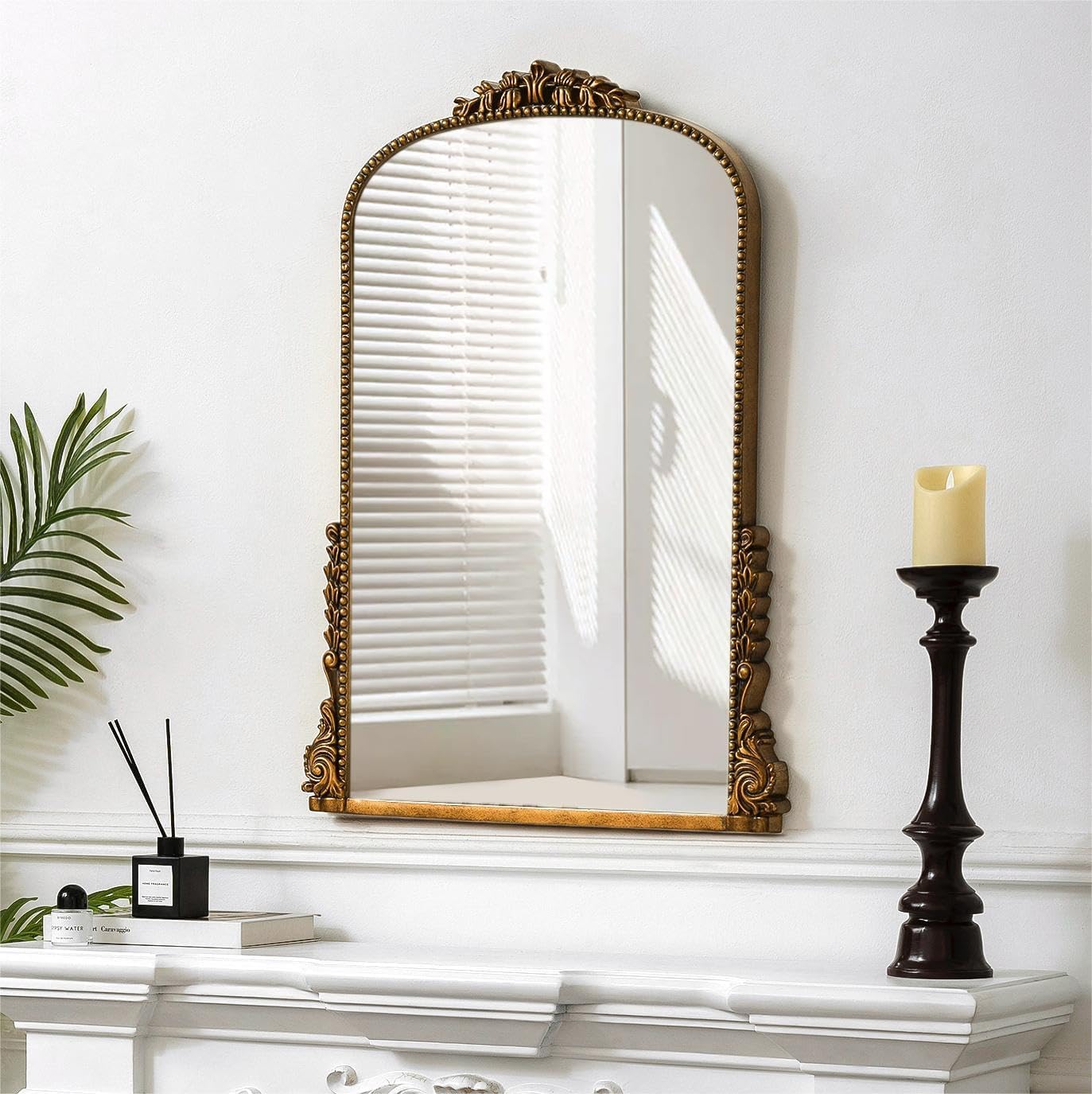 SHYFOY Grand Miroir Mural Baroque Antique, Miroir Entree Doré, Grand Miroir Mural Salon, Decoration Murale, 100 x 72 cm, Or