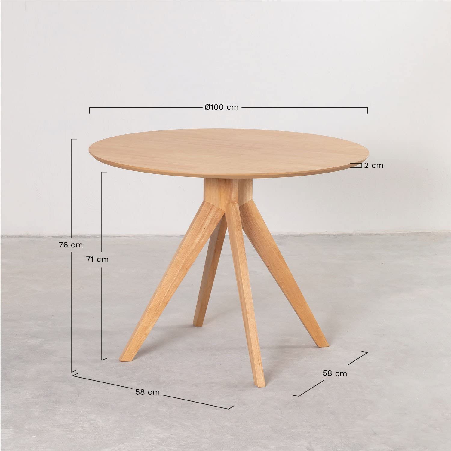 Détails: La Table de salle à manger ronde Ø100 cm en bois Sekiz est un classique actualisé qui revient toujours. Un mélange parfait de fonctionnalité, de polyvalence et surtout une icône d'élégance intemporelle. Son plateau est en MDF, recouvert d'un placage en bois d'hévéa , apportant résistance et durabilité à la conception. Sa forme ronde et sa taille se démarquent, vous permettant de le placer dans n'importe quelle pièce de votre maison , que ce soit dans la salle à manger ou la cuisine. Grâce au bois , vous obtiendrez une salle à manger chaleureuse et cosy où vous pourrez réunir jusqu'à quatre personnes . Combinez Sekiz avec un pack de chaises que vous pouvez trouver à Sklum.Pour l'entretien, nous recommandons de nettoyer avec un chiffon humide et d'éviter l'utilisation de produits chimiques.