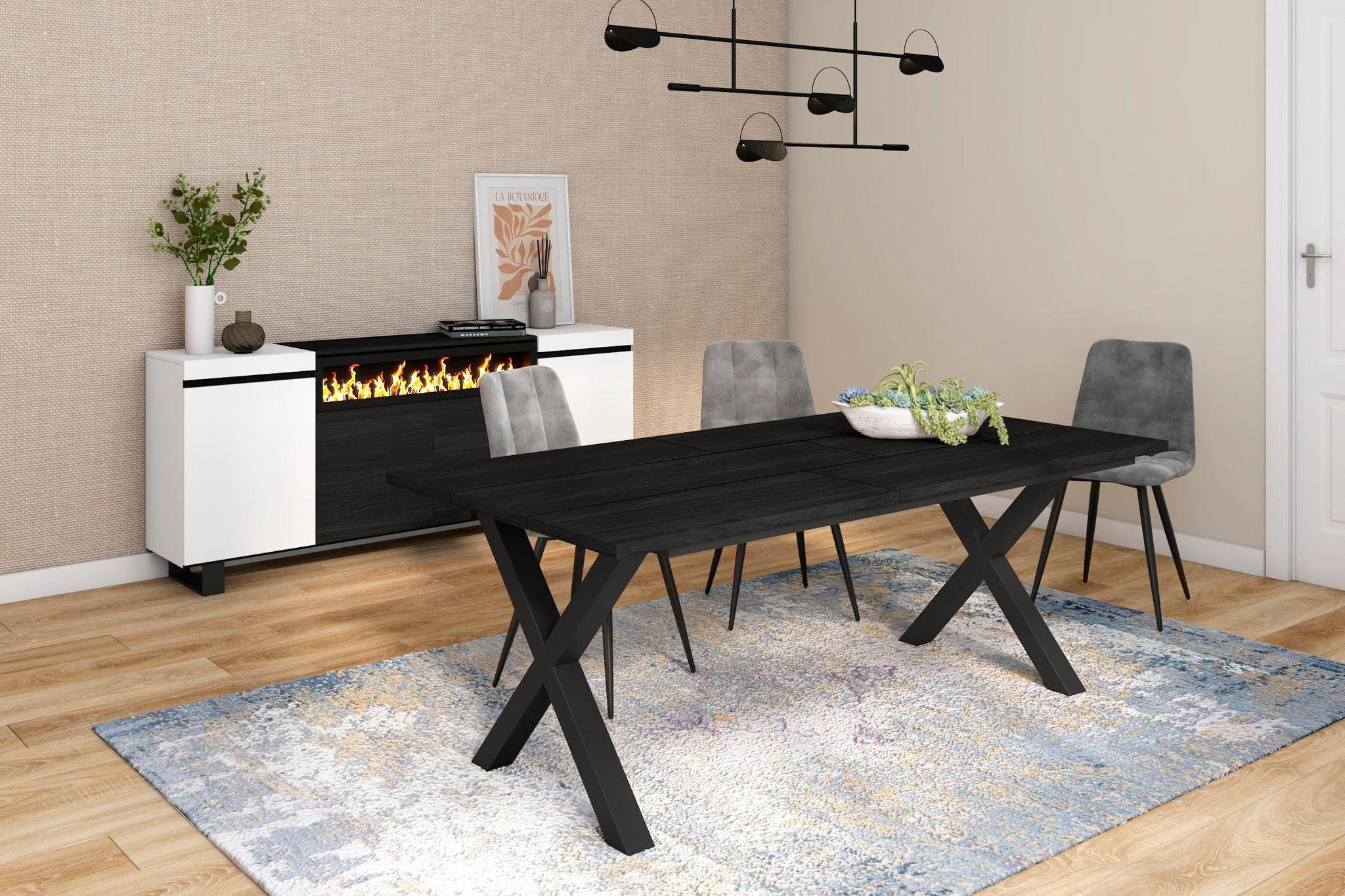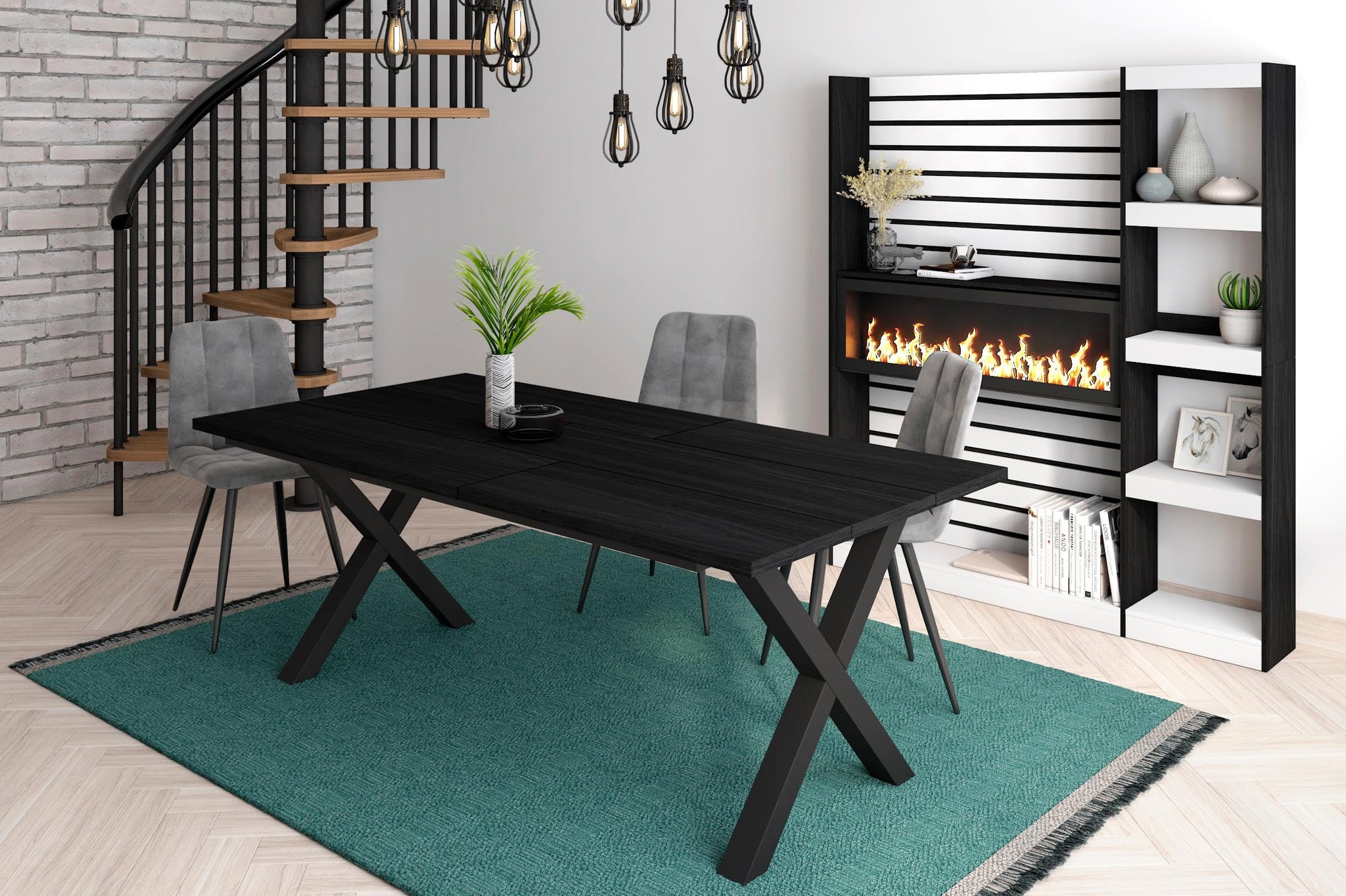 Skraut Home - Table à Manger | 10 Personnes | 200 | Robuste et Stable grâce à sa Structure et aux Pieds Solides | Idéal pour Les rassemblements de Famille | Noir | Style Industriel
