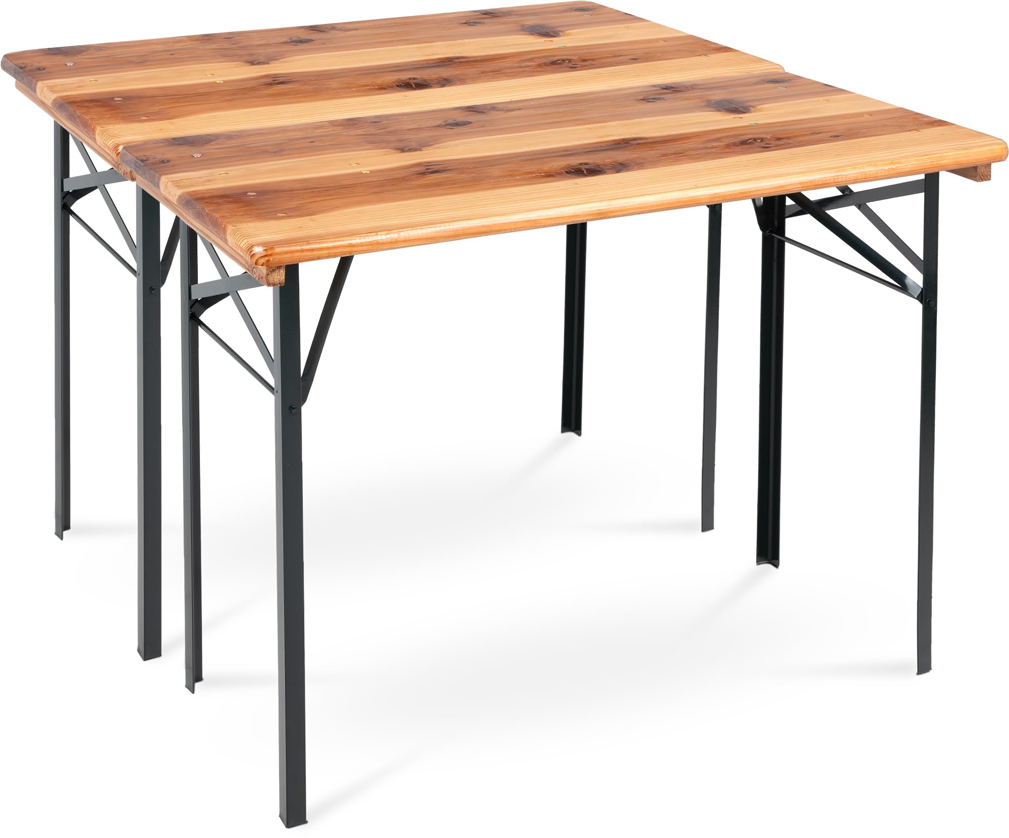 Voici la version raccourcie de 117 cm, ce qui permet de s'installer sur un balcon ou dans un espace réduit et de quand même se sentir à l'extérieur. La table peut aussi bien servir de réserve pour un buffet ou en tant qu'atelier de travail pour un barbecue. Pliée, elle ne prend que peu de place et est là au cas où des invités arrivent à l'improviste.