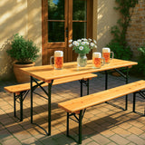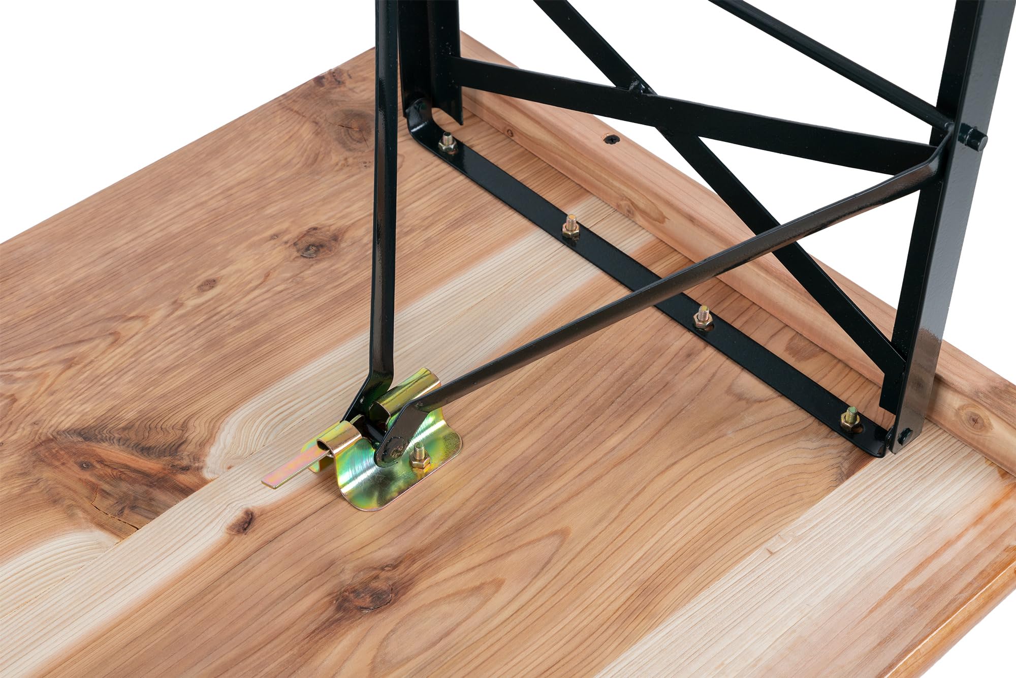 Les charnières appliquées à la partie inférieure et les armatures en acier pliables permettent de les monter et démonter facilement. Si vous n'en avez pas besoin ou lors du transport, vous pouvez facilement ranger ou transporter les bancs et la table.