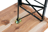 - Pieds métalliques vernis en vert, dessus de table en bois