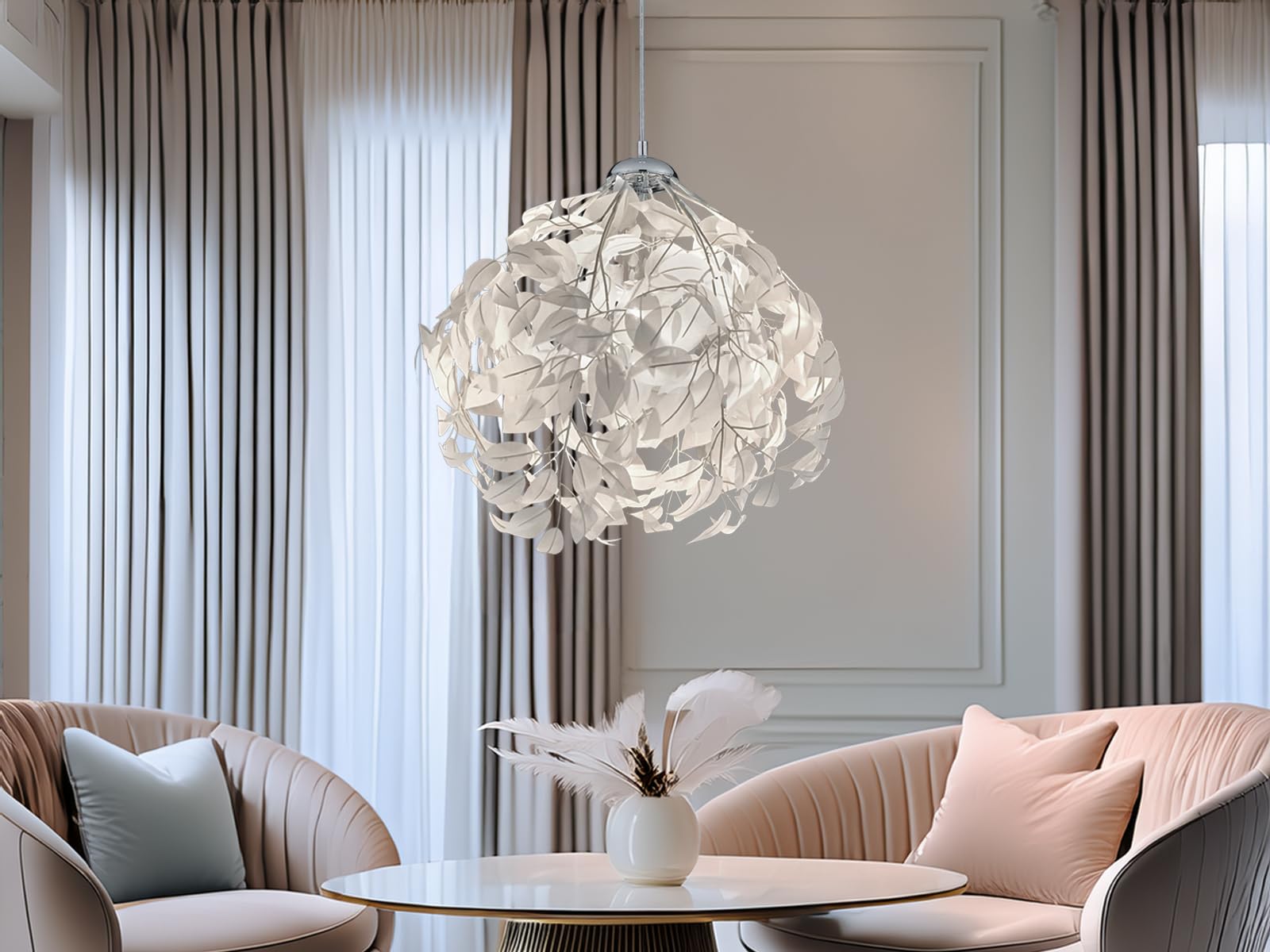 - Matériau : corps en métal argenté chromé - feuilles abat-jour en plastique blanc