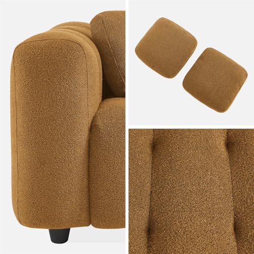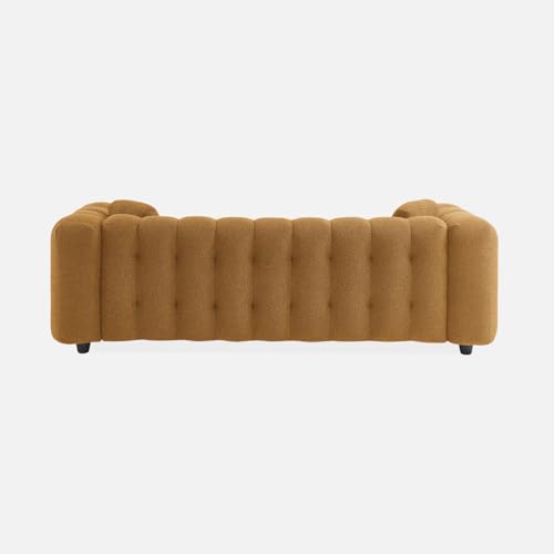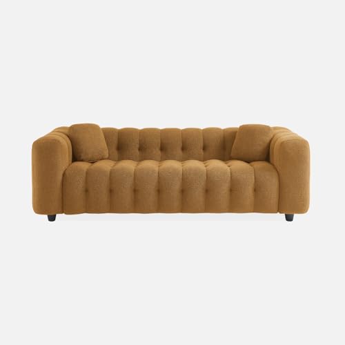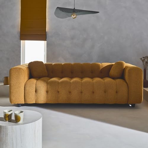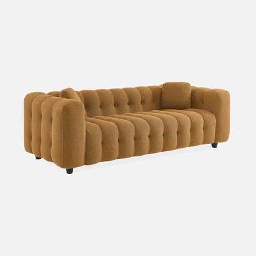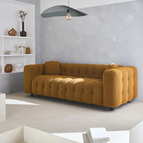 sweeek - Canapé 3 Places en Bouclette texturée capitonné Jaune Moutarde - Structure Bois d'eucalyptus et contreplaqué