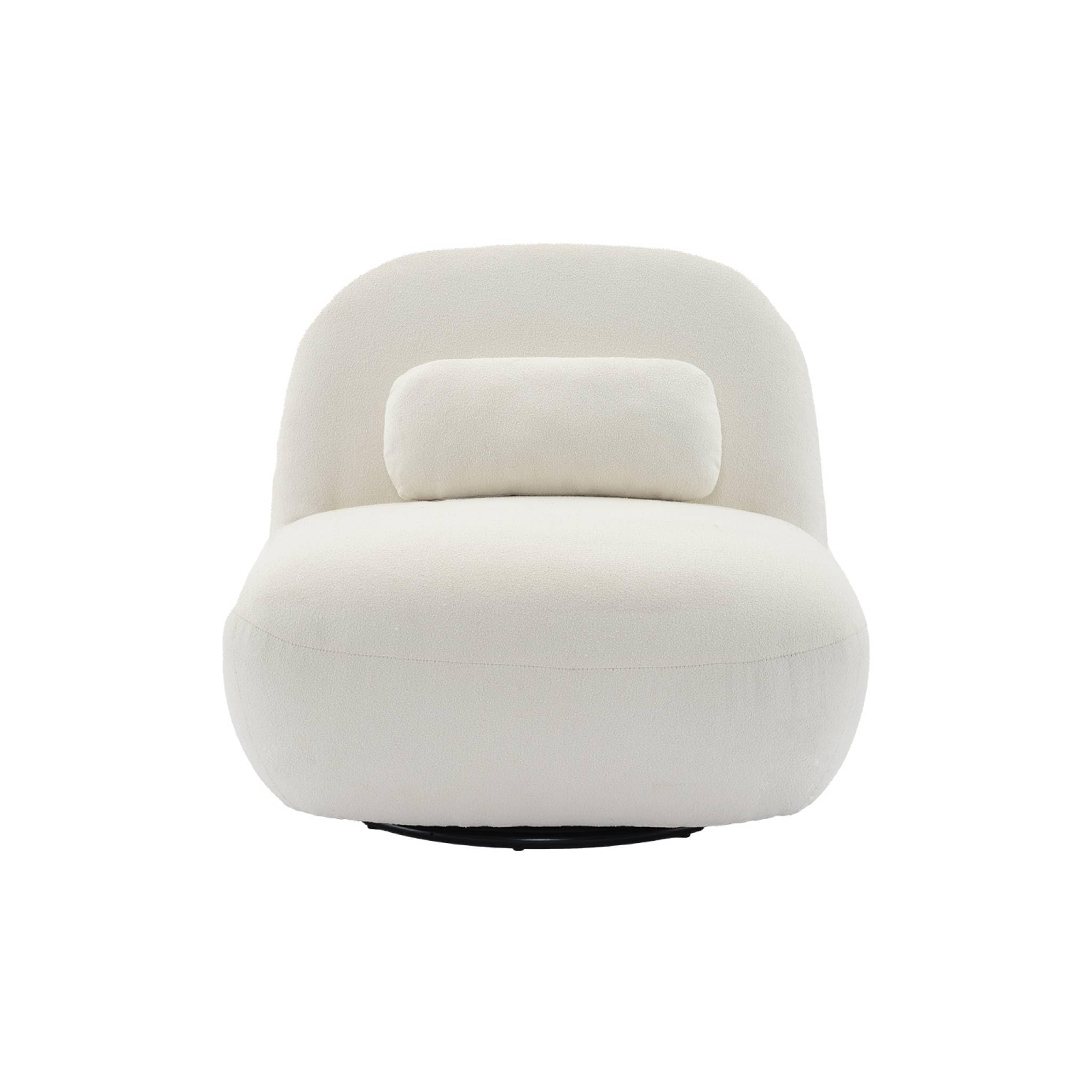 sweeek - Fauteuil pivotant 360° en Bouclette texturée Blanc crème. piètement en métal Noir Mat - Spino