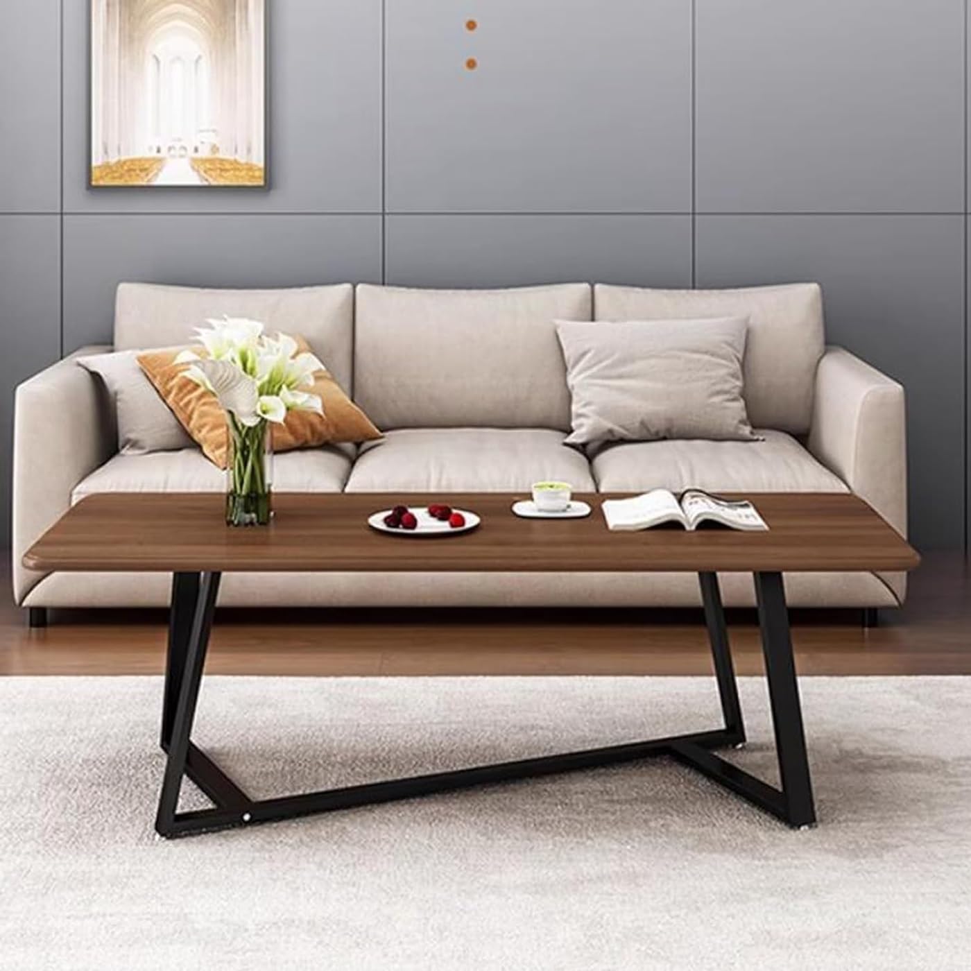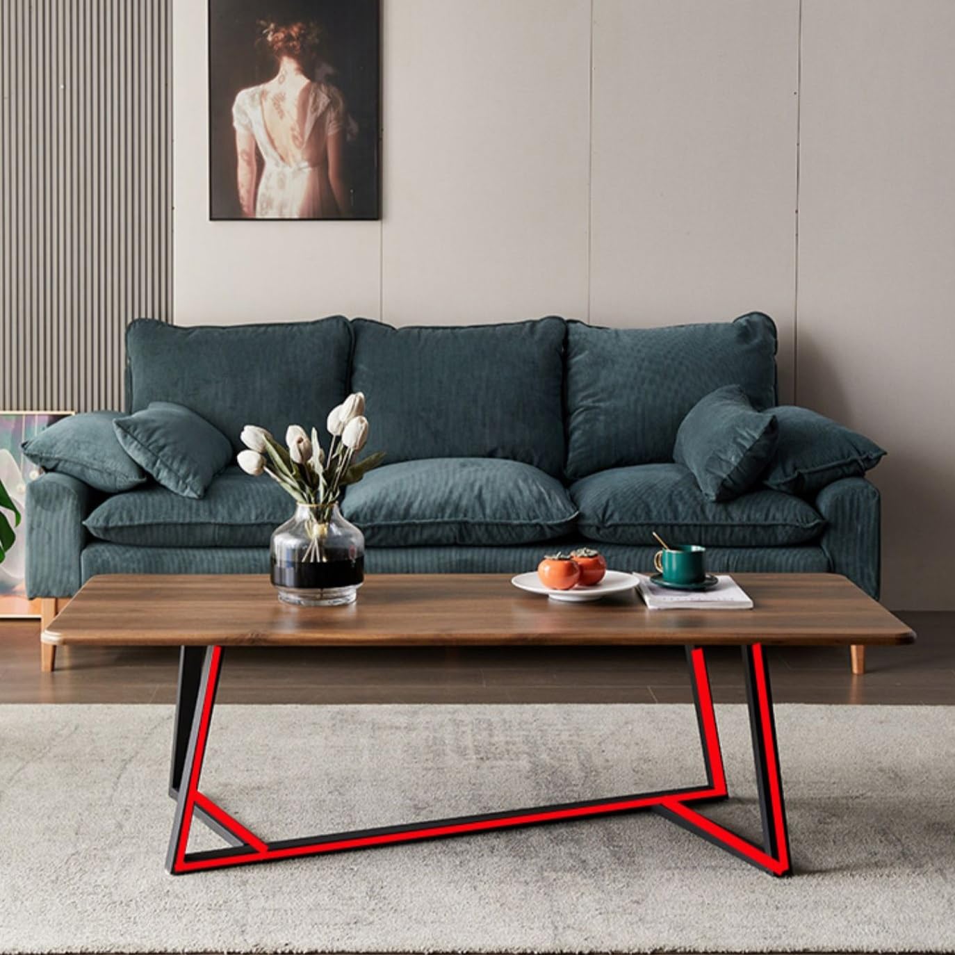 Table basse de luxe en noyer avec cadre en métal et pieds pour le salon, table à cocktail rectangulaire industrielle moderne, simple, industrielle, de taille moyenne, table basse en métal vintage en