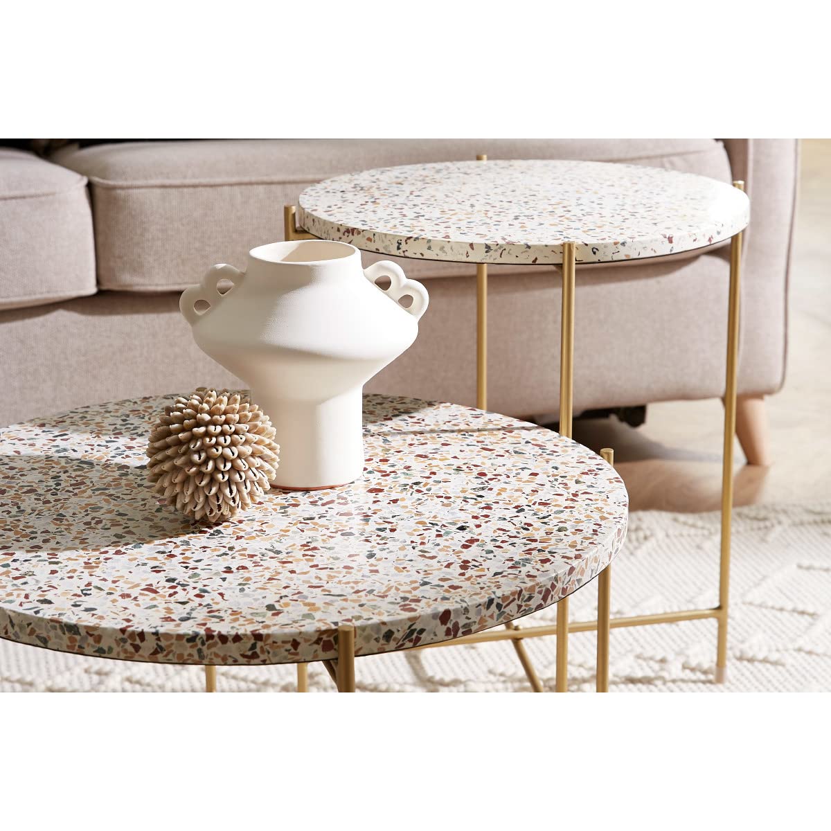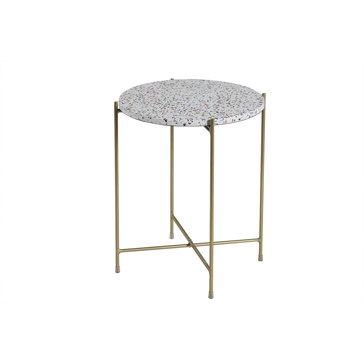 Table d'appoint Design Ronde en terrazzo et métal doré D40 cm Mezzo