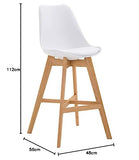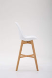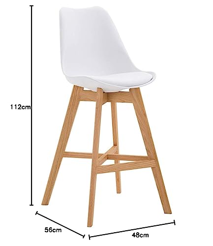 Tabouret De Bar Cannes Dossier Plastique Assie Similicuir I Chaise Haute De Bistrot avec Pied en Bois Et Repose-Pieds I Design Scandinave I Couleur: Blanc, Cadre: Nature