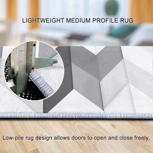 Tapis de Salon Géométrique Forme en V Triangle - Grand Tapis Lavable Super Doux et Antidérapant, Moquette Poil Ras Chambre, pour Manger, l'entrée et la Cuisine, 160x230 cm, Gris