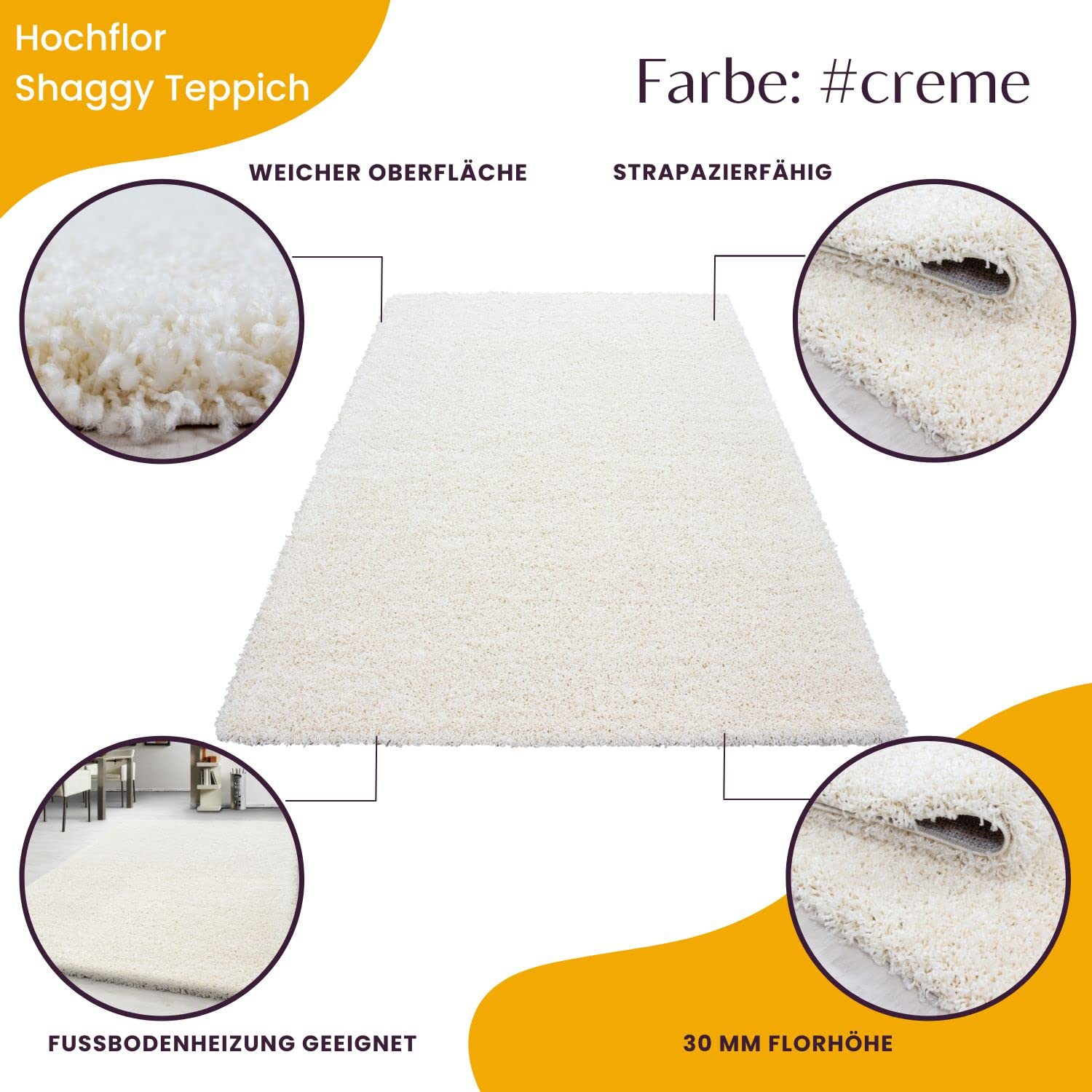 Teppium Tapis Salon 160x230 cm Moderne Adulte Tapis Chambre Crème - Shaggy Tapis Poil Long Salle de Séjour Concevoir Unicolore Tapis Moelleux et Doux - Tapis Cuisine Moquette Salon