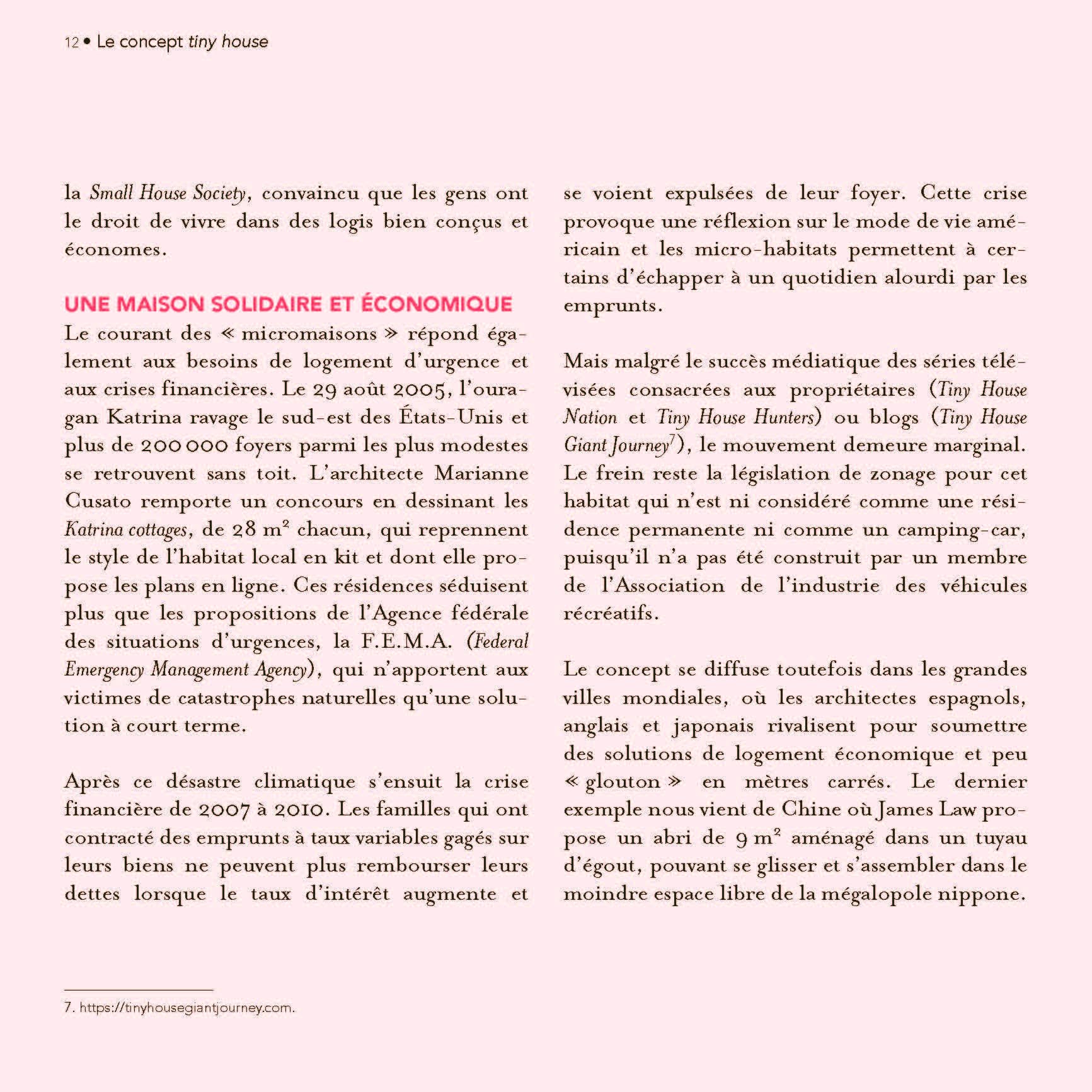 Détails: Né en Californie à la fin du XXe siècle, l'engouement pour les tiny houses s'est rapidement développé jusqu'à gagner l'hexagone. Les tiny houses, littéralement "minuscules maisons", séduisent de plus en plus de Français : offrant liberté et autonomie, elles sont l'incarnation d'un nouveau mode de vie profondément ancré dans une réflexion écologique. Nomadisme et minimalisme sont les maîtres mots de ce nouvel habitat roulant qui a su s'adapter pour offrir un maximum de confort dans un espace réduit.