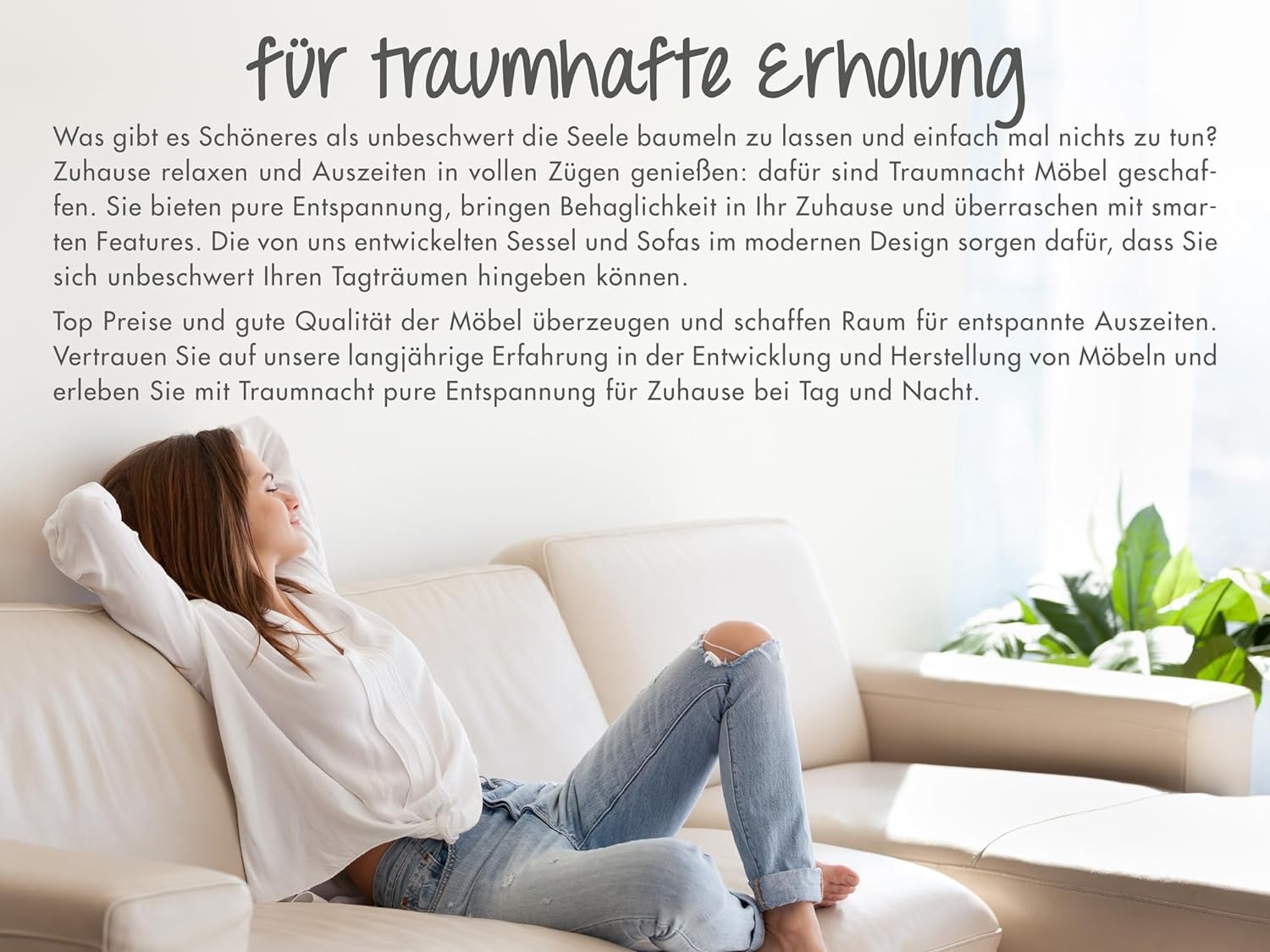 - Notre canapé lounge Traumnacht Lyon sera votre nouveau meuble préféré pour se détendre et se détendre. Il embellit n'importe quel intérieur avec son élégant revêtement en velours et donne à votre maison un charme particulier. Ce canapé moderne mais aussi élégant s'adapte parfaitement à tous les styles d'intérieur.