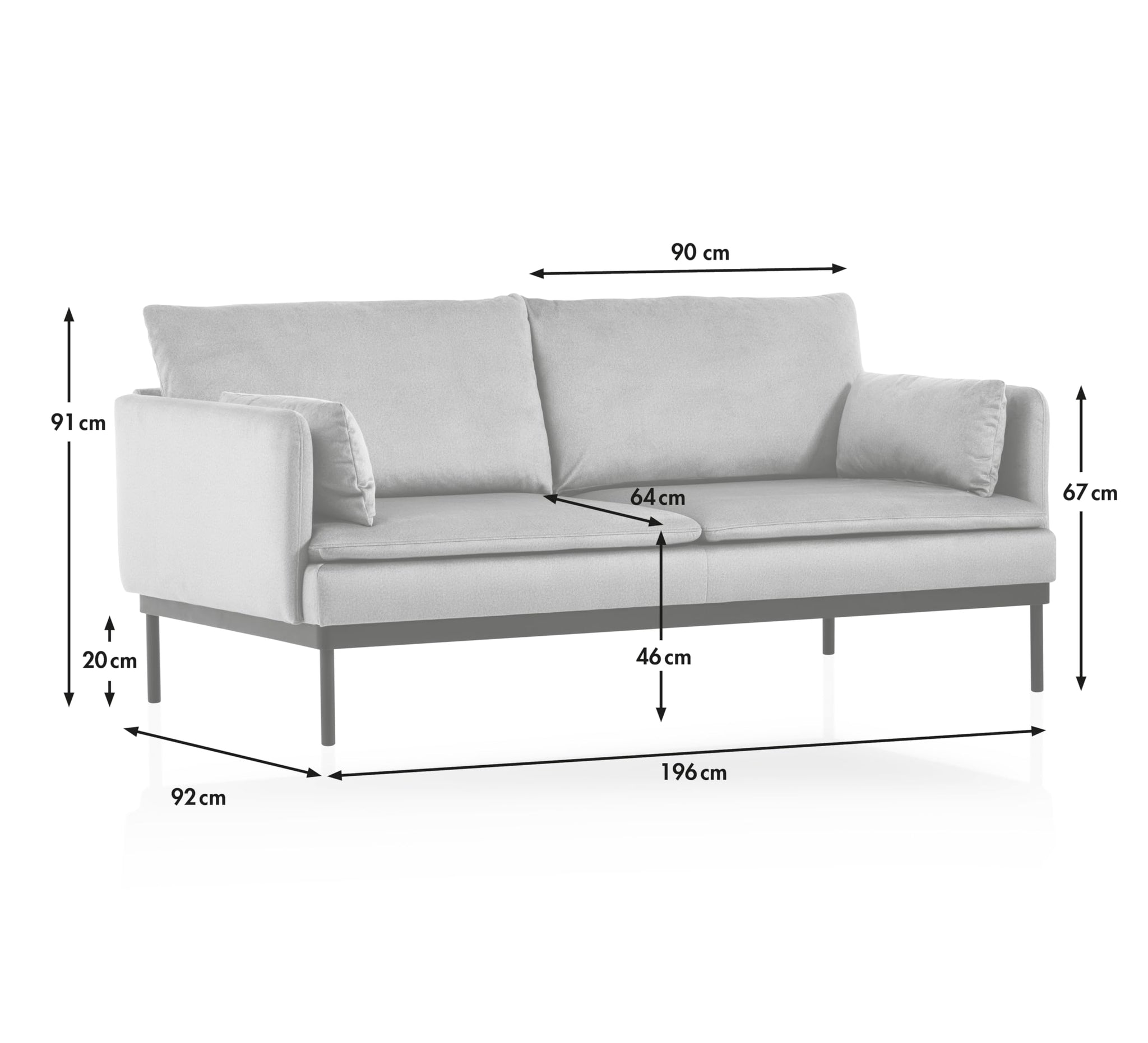 - DÉTAILS - Largeur totale: 196 cm, Profondeur totale: 92 cm, Hauteur d'assise : 46 cm, Hauteur totale : 91 cm, Hauteur du pied : 20 cm