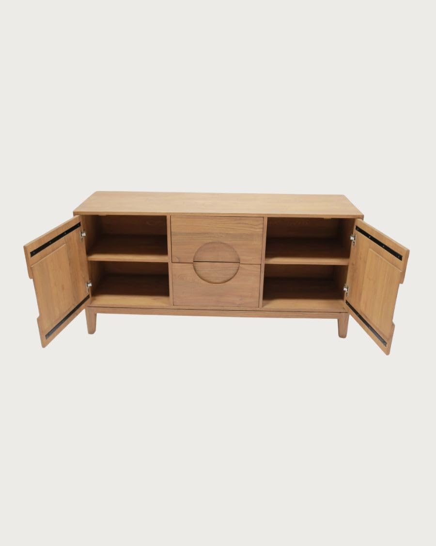 - Kyoto - Buffet vintage en teck massif 165 cm : Le buffet vintage en bois massif KYOTO trouvera une place de choix dans votre intérieur grâce à sa structure noble de teck