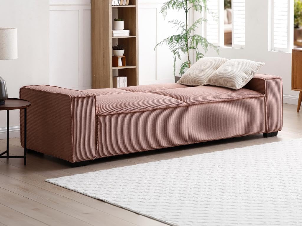 - Canapé 3 places convertible en velours côtelé rose. Couchage occasionnel. Douceur du velours côtelé. Coussins additionnels. Dim: L230 x P94 x H87 cm. SEKOTA