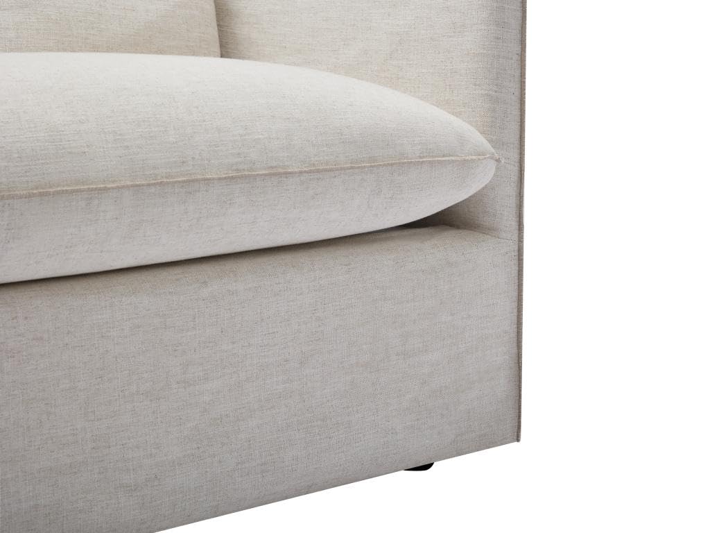 Détails: Habillé d'un élégant revêtement en lin et tissu chiné, le MASLINO offre un confort exceptionnel grâce à son assise et son dossier garnis de plumes, créant une sensation moelleuse et enveloppante. Le MASLINO apporte une touche raffinée et chaleureuse à votre salon, idéal pour un espace où il fait bon se détendre.