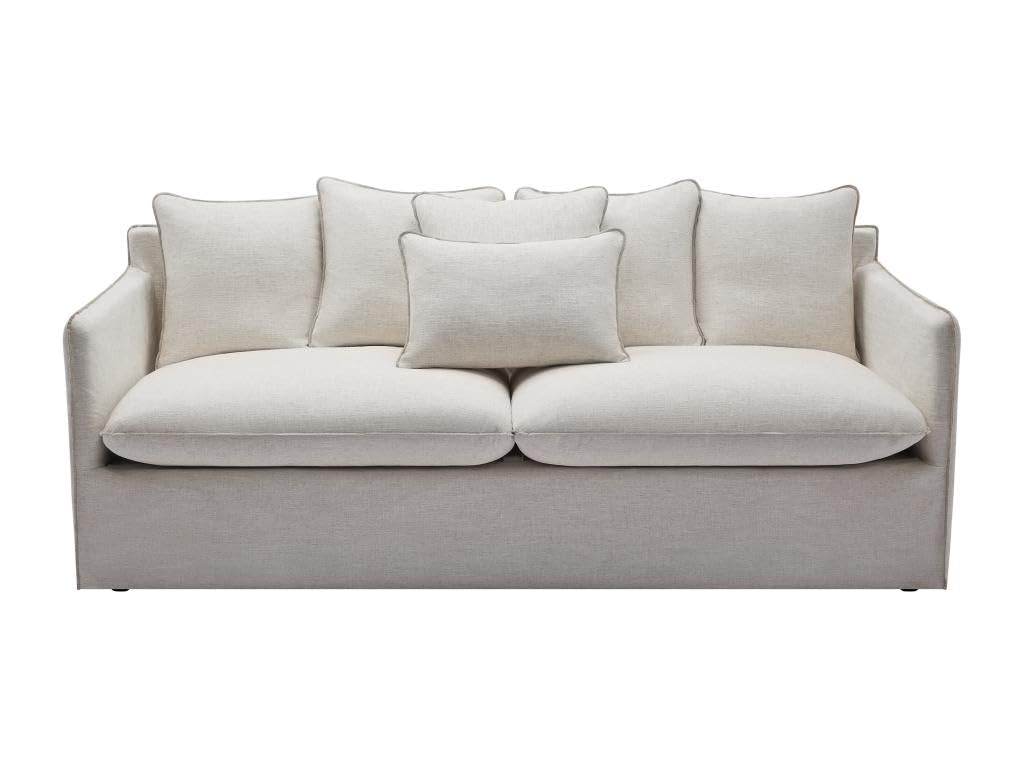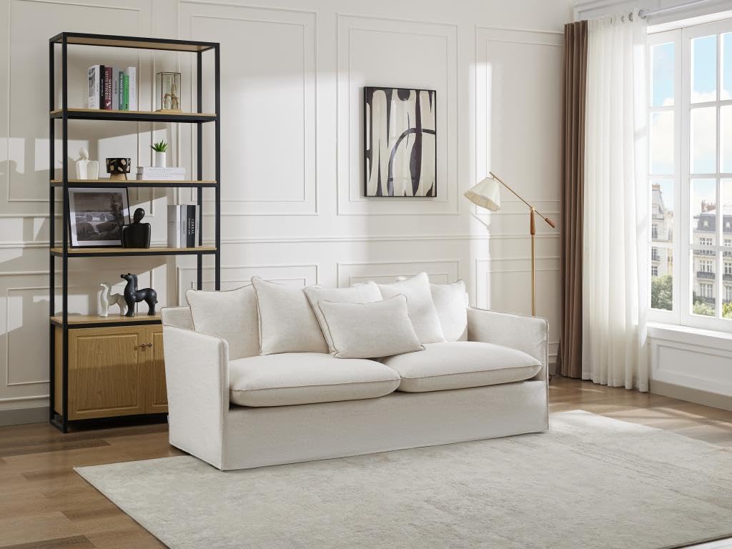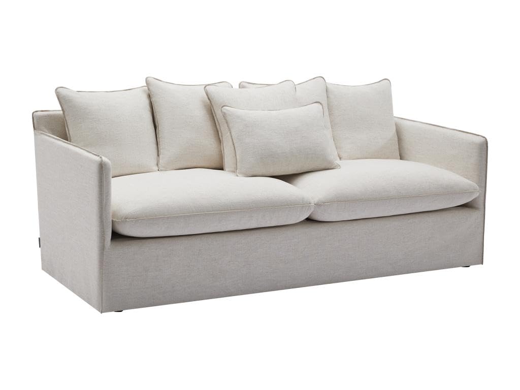 - Canapé 3 places en lin et tissu chiné couleur blanc. Entièrement déhoussable. Garnissage plumes. Dimensions : L216 x P93 x H87 cm. MASLINO de Maison Céphy