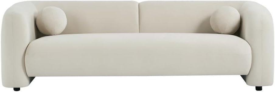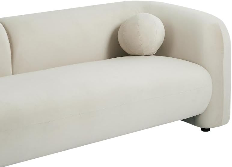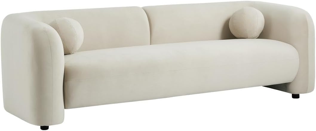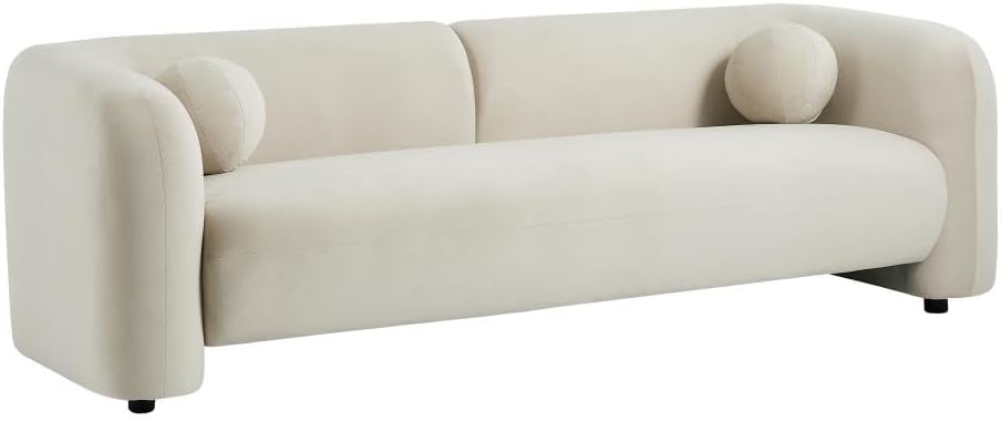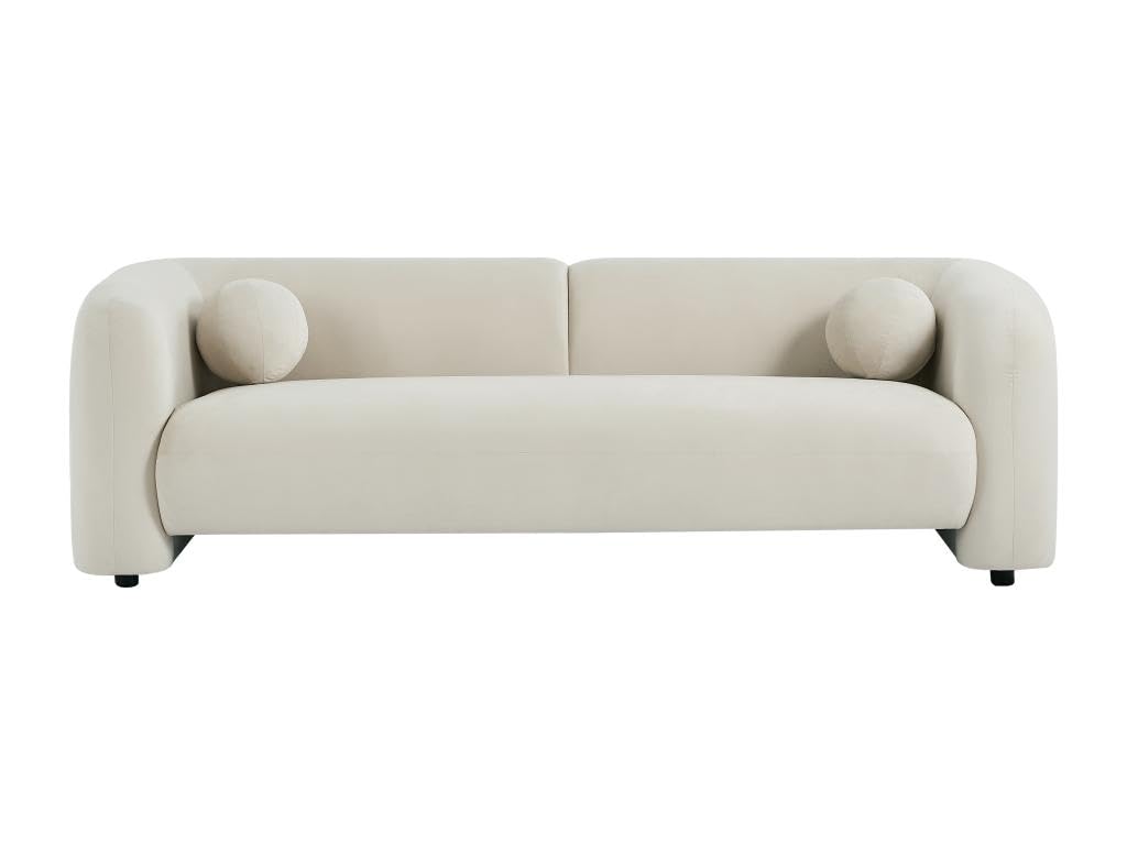 - Canapé 3 places en velours couleur beige. Style Design. Déhoussable. Piètement en bois. Coussins additionnels inclus. Dimensions : L226 x P86 x H68 cm OVOTAS