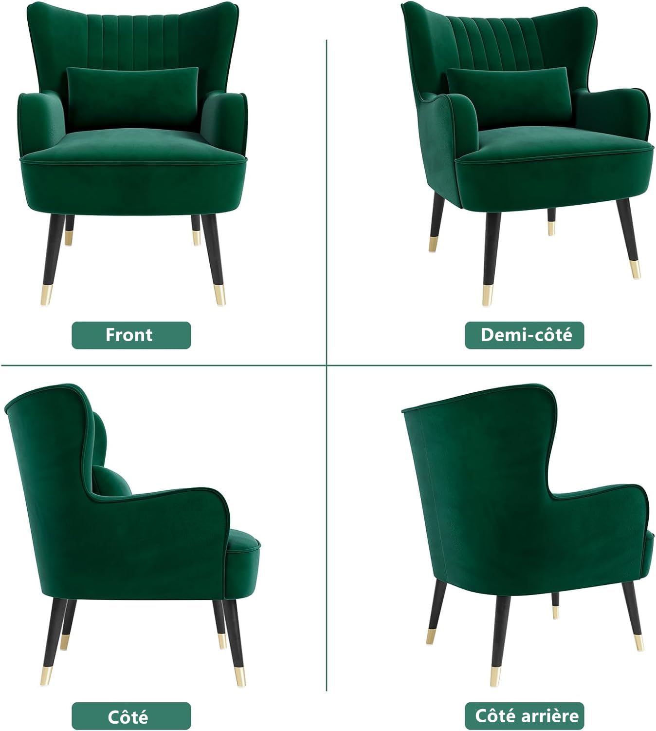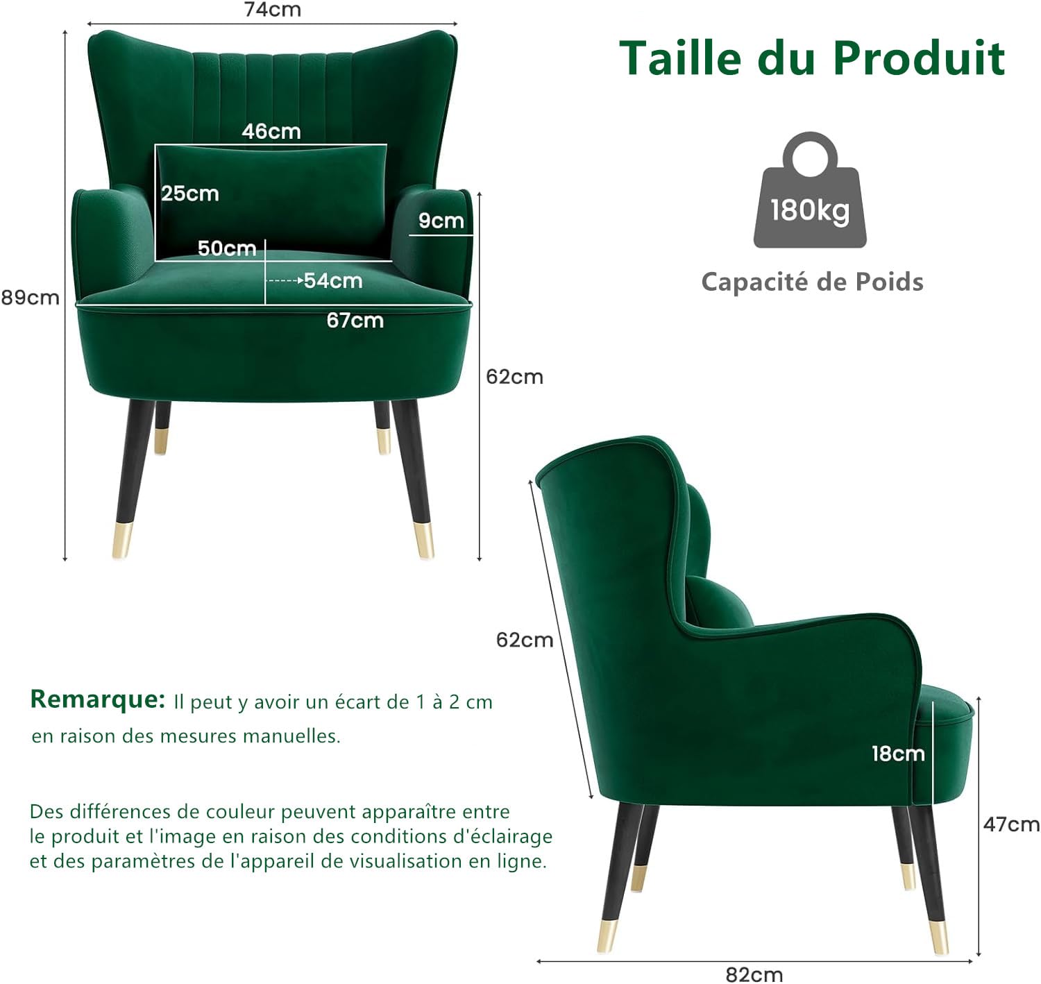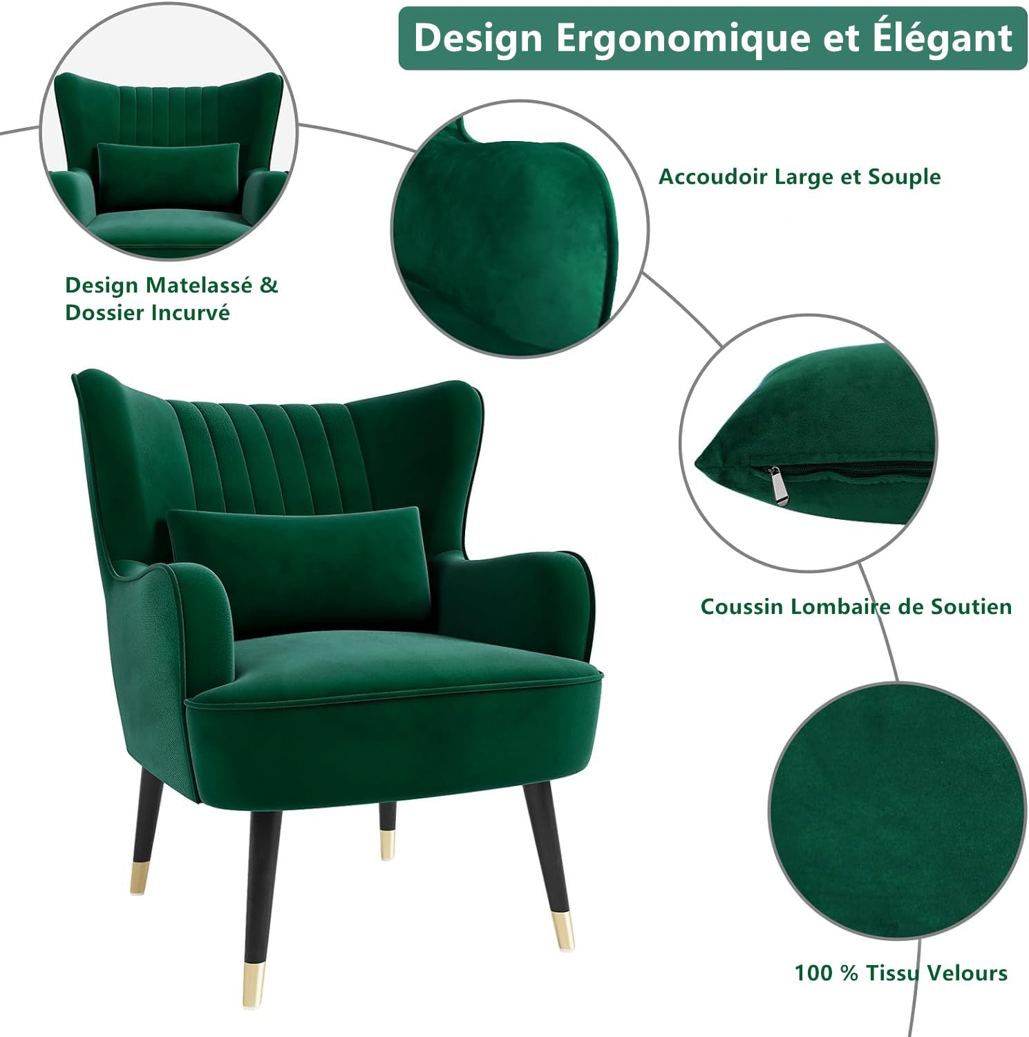 - 【Design Ergonomique et Elégant】 Cette chaise velour avec design matelassé et dossier incurvé, l'accoudoir large et souple. L'assise remplis de mousse épaisse de 18 cm, ainsi que le coussin lombaire de soutien pour vous permettre de vous sentir vraiment détendu.