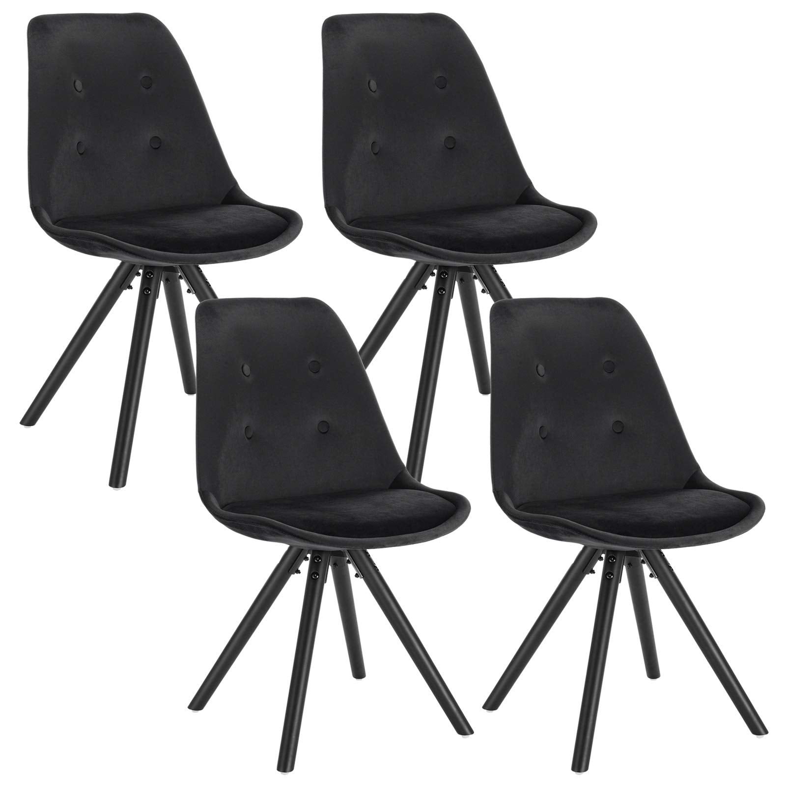 WOLTU Lot de 4 Chaises de Salle à Manger Chaises de Cuisine en Velours,Chaises de Relax Nouveau Design Noir BH196sz-4