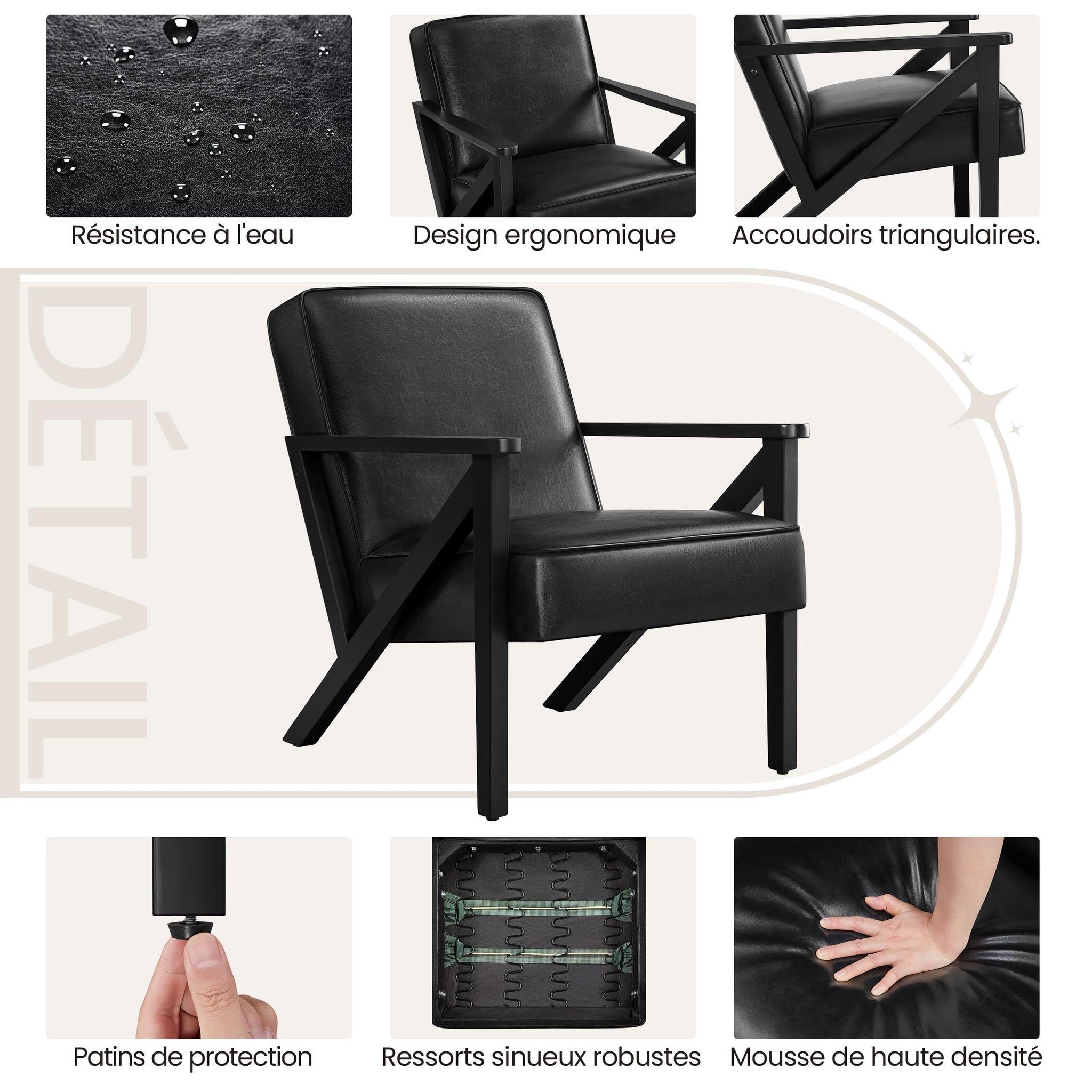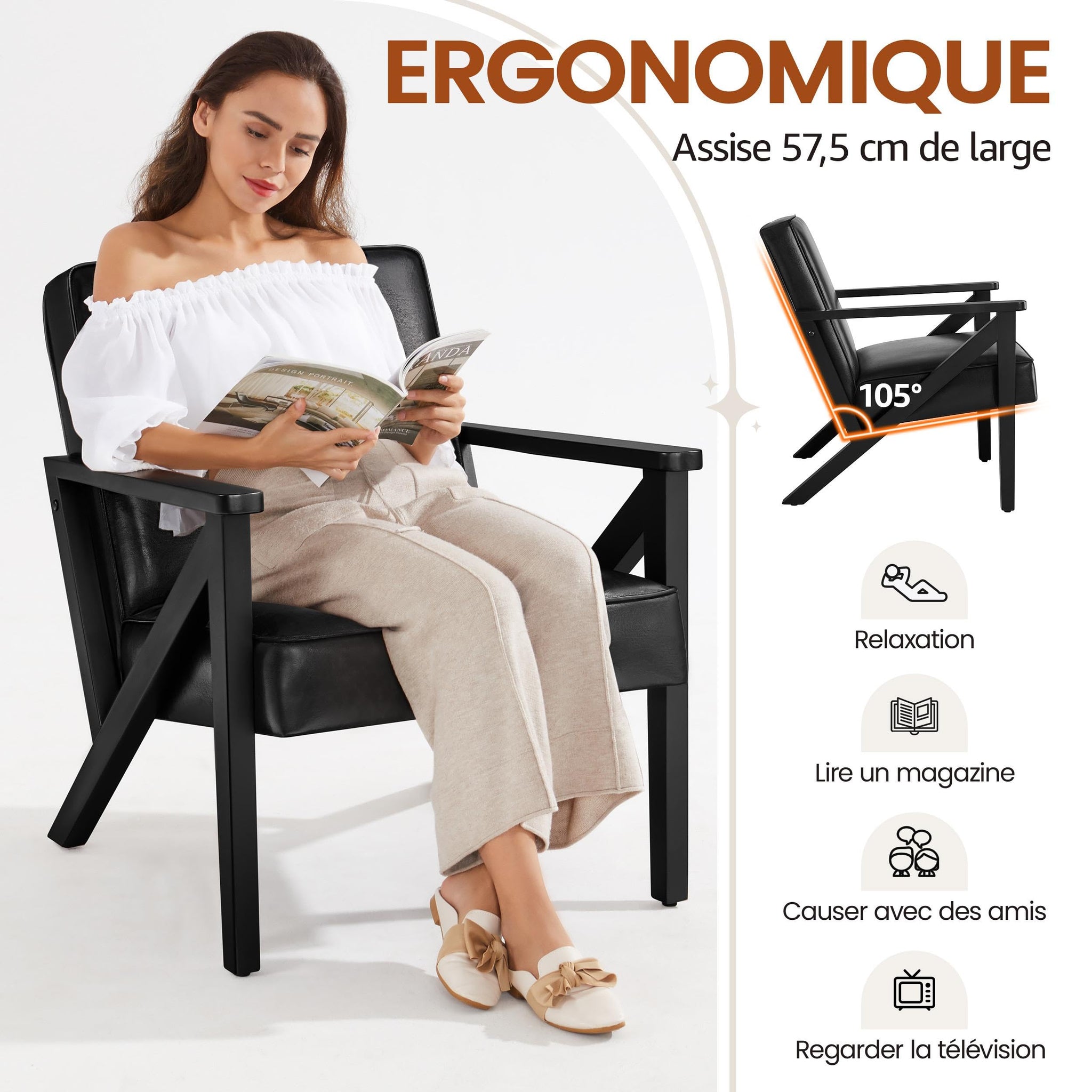 • Allure raffinée : Avec les pieds angulaires en bois, ce fauteuil design de salon évoque un attrait moderne du milieu du siècle. Son revêtement en similicuir apporte une touche élégante et rétro à votre intérieur.