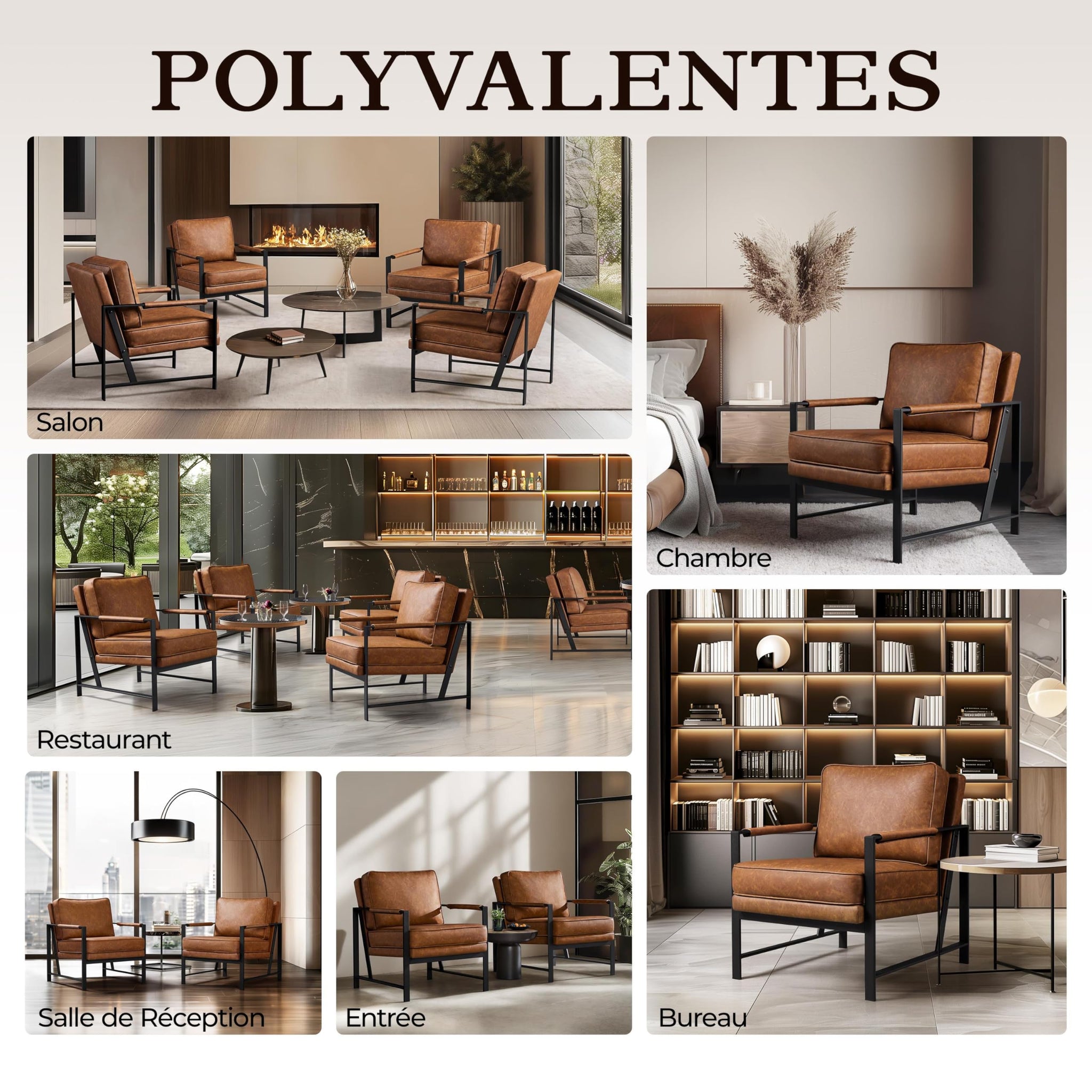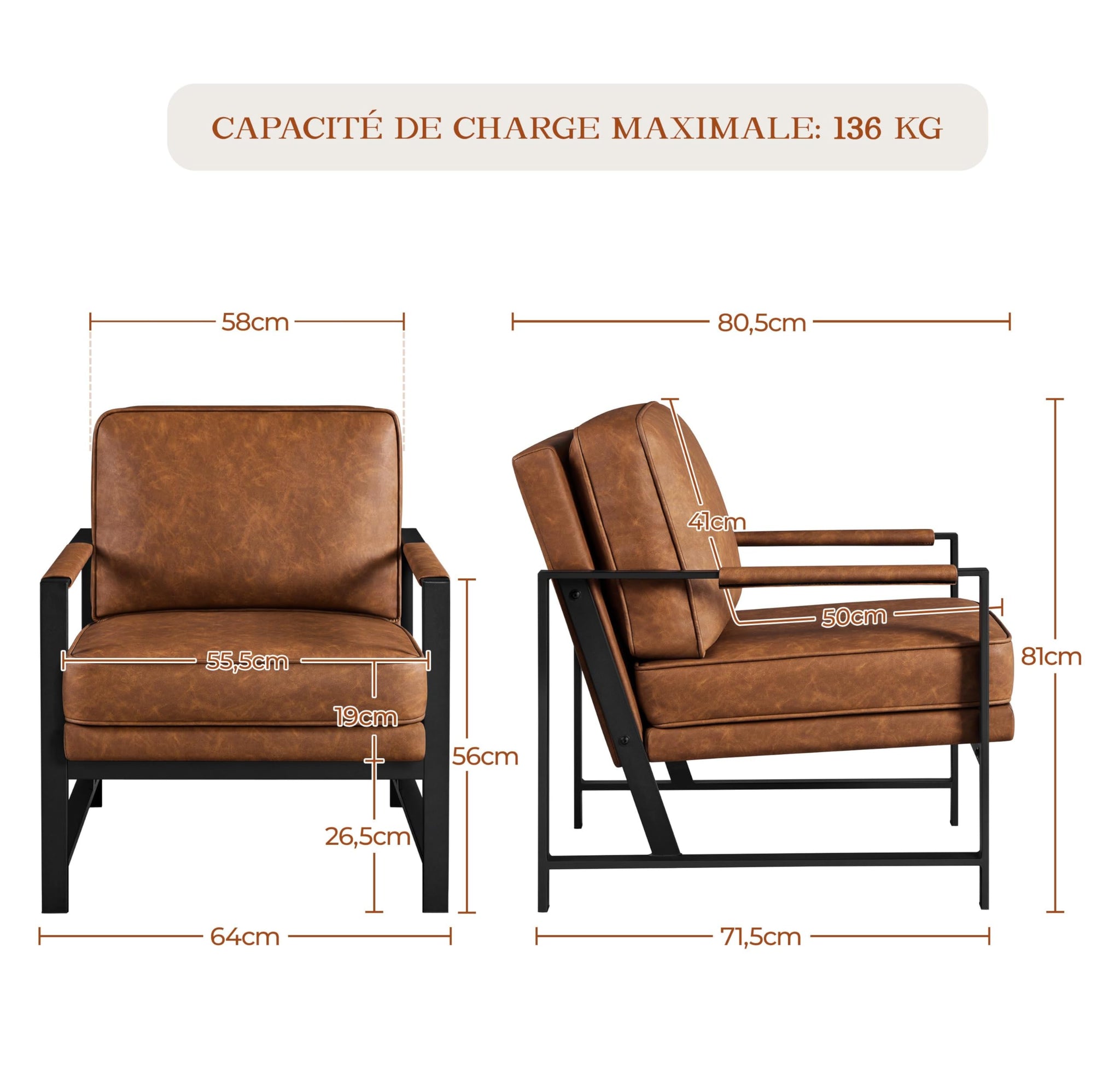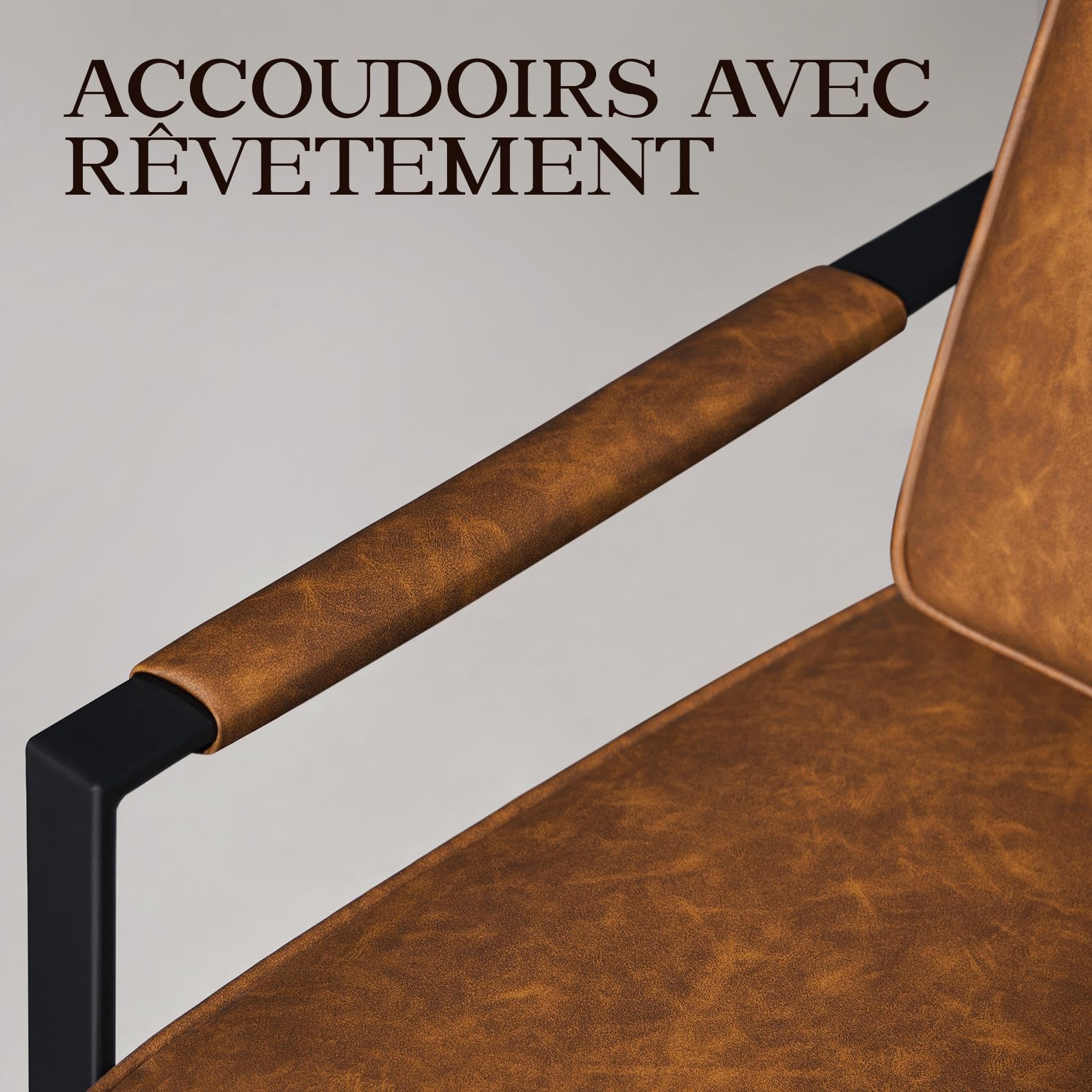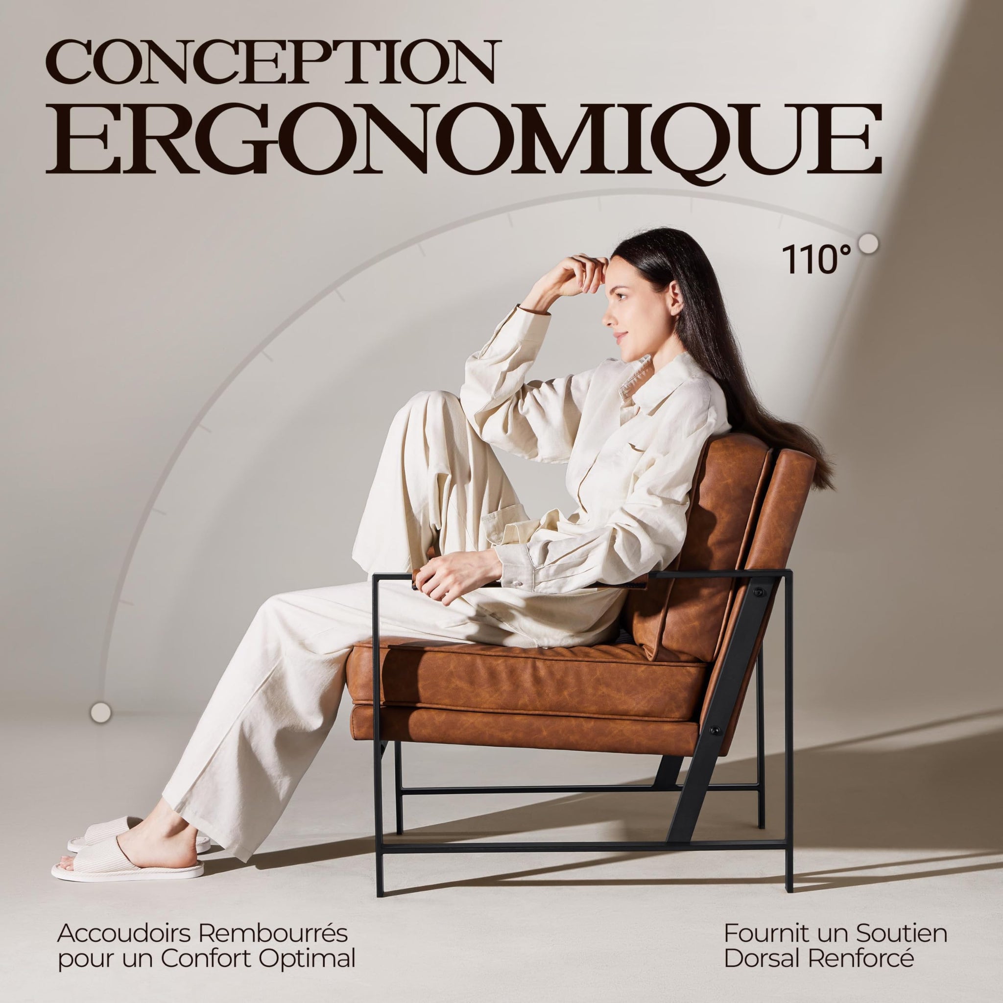 - Élégant et classique : Moderne et classique, ce fauteuil d'appoint ajoute un effet raffiné dans votre pièce. Le similicuir PU rétro s’adapte bien au cadre noir et mat. Les pieds géométriques rendent tout le meuble chic et élégant.