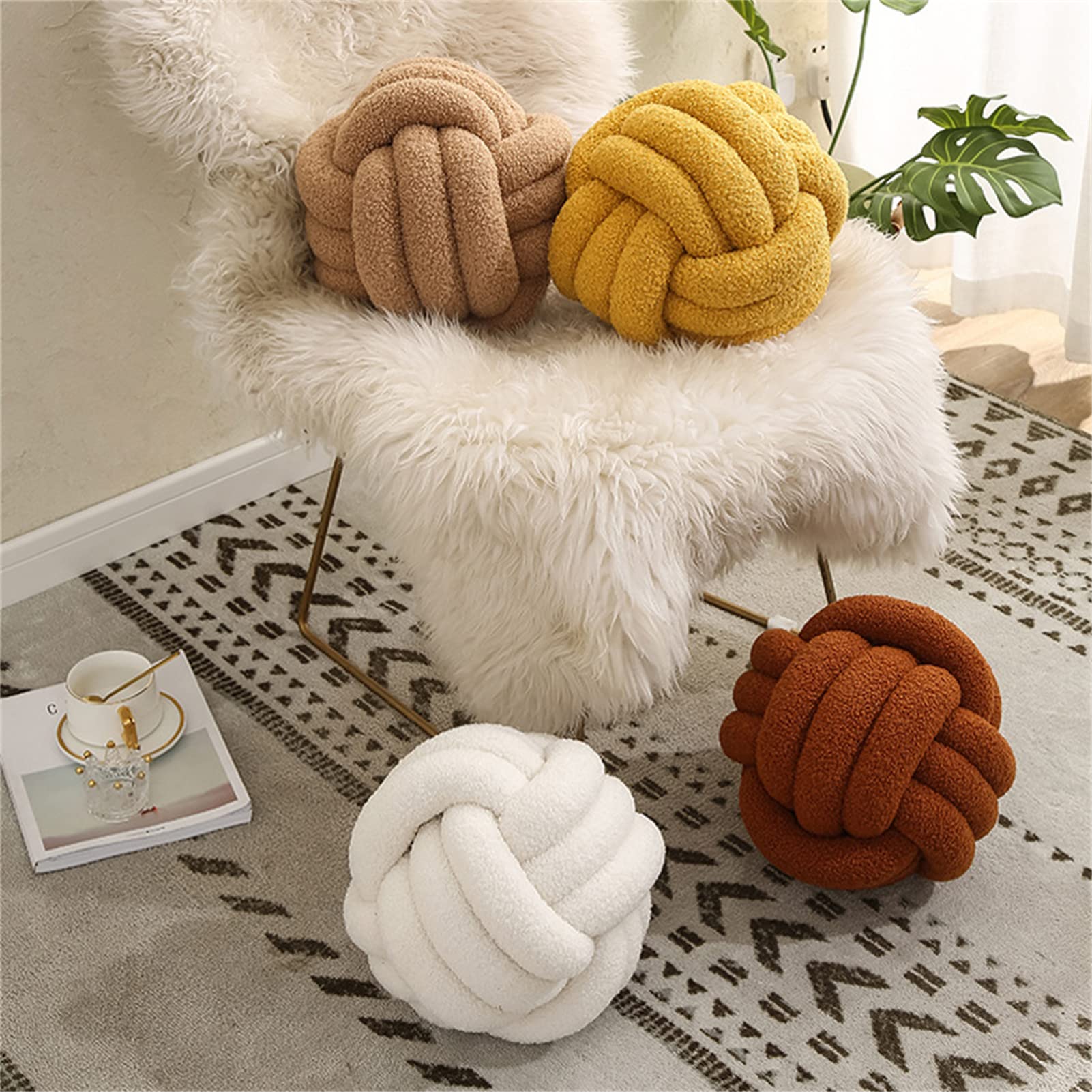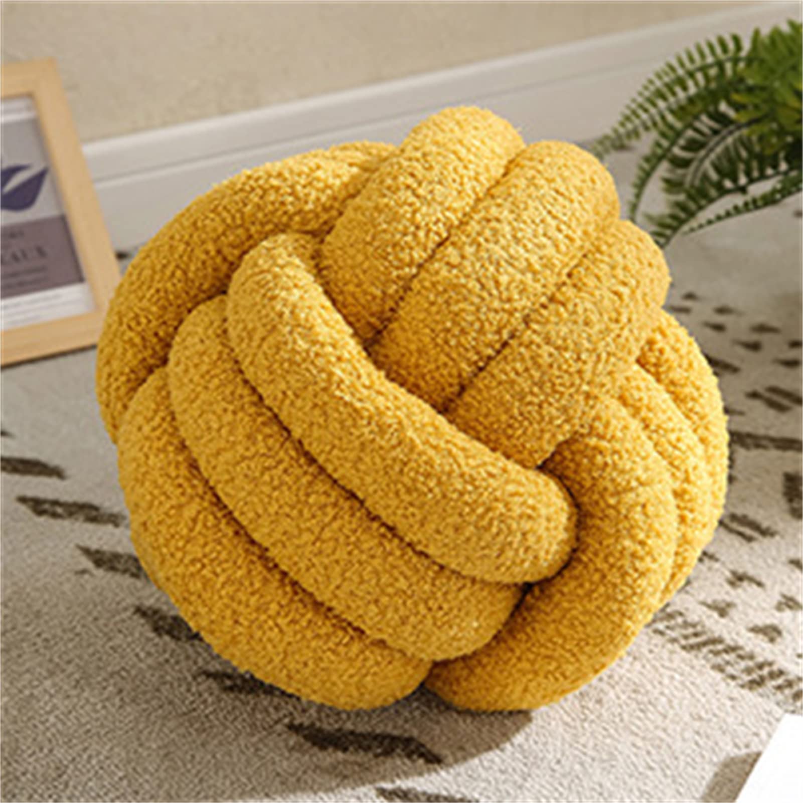 YT-KOKE Sherpa Fleece Round Knot Ball Pillow, Coussin Ddécoratif Knot pour Canapé-lit Chaise Sol, Oreiller Décoratif Jeté, Coussin Rond pour Les Copines Jouant à la Photographie (Yellow,22cm)