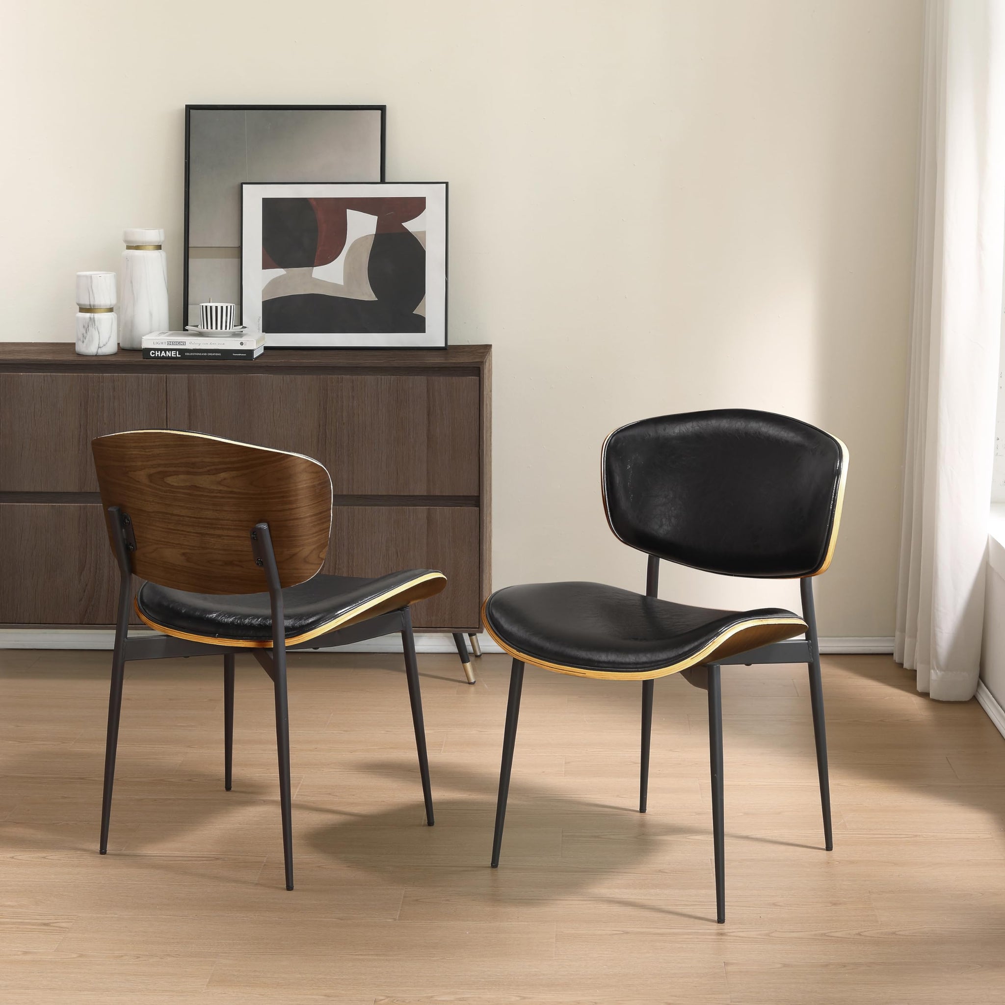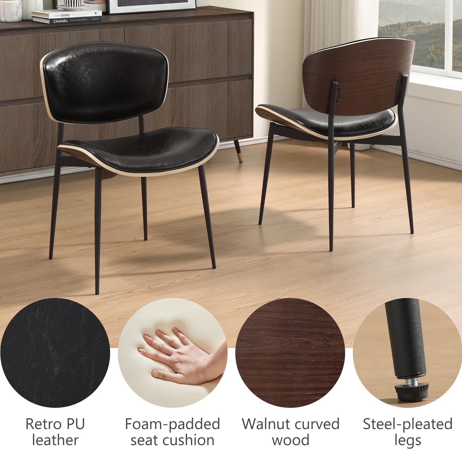 Zouron Chaise de Salle à Manger Moderne du Milieu du siècle Lot de 2,Chaise en Cuir rembourré,Chaise de Cuisine (Pieds en métal),Chaise de Salle à Manger,Noir